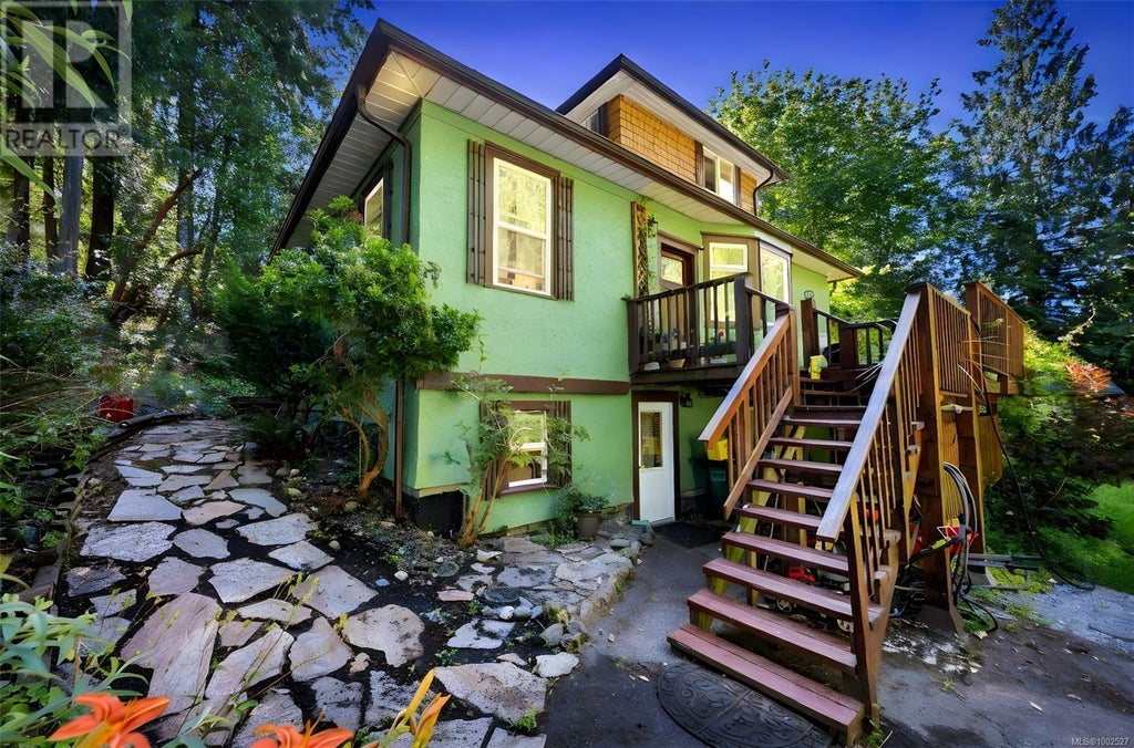 Discover the charm of this beautifully maintained 1930s heritage home, set on a private half-acre lot just a short walk from Shawnigan Lake Village. The main floor features two spacious bedrooms, a four-piece bathroom, and an open-concept kitchen, living, and dining/flex area that creates a welcoming atmosphere for everyday living or entertaining. Upstairs, a versatile loft offers the option of a primary suite with its own cozy four-piece ensuite. The lower level includes a fully self-contained studio suite, ideal for extended family, guests, or generating rental income. Step outside to enjoy the stunning tiered gardens that provide year-round color and privacy, or relax and entertain on the expansive wrap around deck overlooking the yard and forest. A large detached workshop adds valuable space for hobbies, storage, or creative pursuits. This charming home is waiting for the right person to bring it back to life with just a few tweaks! Blending heritage character with modern comfort, this unique property is an exceptional retreat for families, artists, or anyone seeking a peaceful lifestyle with added income potential—schedule your private viewing today! (id:6289)