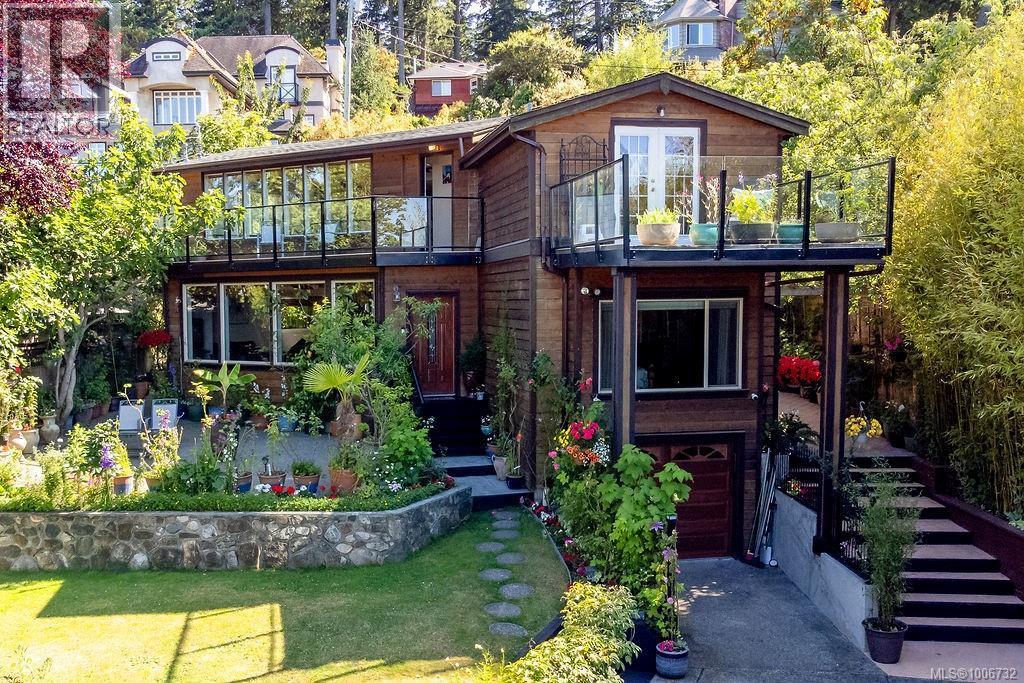 Coastal Elegance & Ocean Views in Coveted Cordova Bay Beautifully updated West Coast 3-bed, 2-bath home on a securely gated, sun-filled 0.22-acre property with ocean views and lush Mediterranean-inspired gardens. Located in prestigious Cordova Bay, this private sanctuary blends elegance, comfort, and nature. The main floor offers an open-concept living, dining, and kitchen area designed to capture the beauty of the coastline. Enjoy sweeping ocean views from the living room, framed by wide sliding glass patio doors and large windows that also overlook the vibrant back garden. Natural light pours in through the patio doors and windows, creating a bright and airy atmosphere year-round. The chef’s kitchen features a large central island with extra storage, granite countertops, stainless steel appliances, and custom birch cabinets with pull-out shelves. The spacious primary bedroom enjoys ocean views and a serene ensuite with walk-in shower. Upstairs, a bright, open family room opens to a generous ocean-view deck—ideal for morning coffee or evening relaxation. This level also includes an ocean-facing front bedroom with its own private deck, a quiet smaller bedroom with garden views, full bath, and laundry area. The outdoor spaces are truly exceptional. Terraced Mediterranean-style gardens feature flowering plants, mature fruit trees, and stands of tall bamboo for privacy. A series of cozy patios and a grape arbor offer multiple outdoor living and dining options. Solar lighting is thoughtfully placed throughout the landscape, creating soft, lovely evening ambiance. Additional features include a single-car garage, ample parking, and numerous upgrades throughout (id:6289)