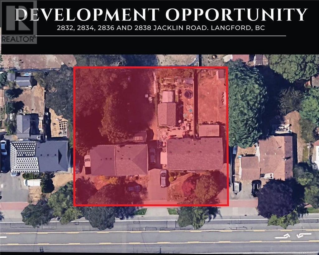 Prime Land Assembly Opportunity in Downtown Langford. An exceptional development opportunity awaits at 2832, 2834, 2836, & 2838 Jacklin Road, located in the heart of Langford’s city centre. This high-density site, currently zoned R2, is part of the sought-after City Centre Pedestrian (CCP) Zone, allowing potential for a transformative mixed-use project high rise, with commercial space on the first floor. With city-approved projects already underway nearby, this location is primed for high-rise development, offering immense value to developers looking to make a mark in one of the region's highest-demand areas. Please reach out to the listing agent for detailed information on this exciting investment. All details are approximate and should be verified with the City of Langford if important. Walking distance to all amenities, parks, and transportation. Hold the property as a rental with 3 beds and 2 baths. No current strata fees. (id:6289)