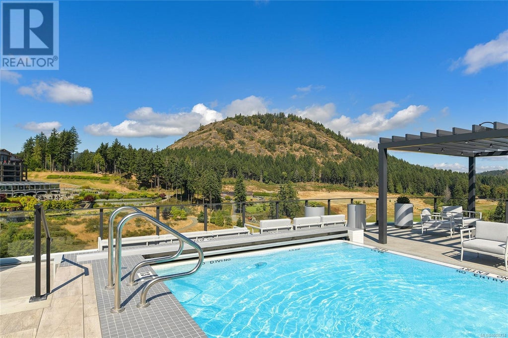 Welcome to ONE BEAR MOUNTAIN and luxury condo living. This immaculate 2 bedroom, 2 bathroom unit boasting an abundance of natural light comes with a large balcony with golf course views. This is the ideal building for those looking for amenities as it features an outdoor pool, fitness centers including a gym and yoga room, a sky lounge and business center, full service Concierge, storage and underground parking. The building is located right by 2 world renown golf courses, clay tennis courts, and Mount Finlayson. This one year old unit is full of thoughtful and high end finishes and features a gas fireplace in the living room. This unit is a resale, so no GST!! Don't hesitate to book your showing now, priced well below the other 2 bed 2 bath units it is priced to sell. (id:6289)
