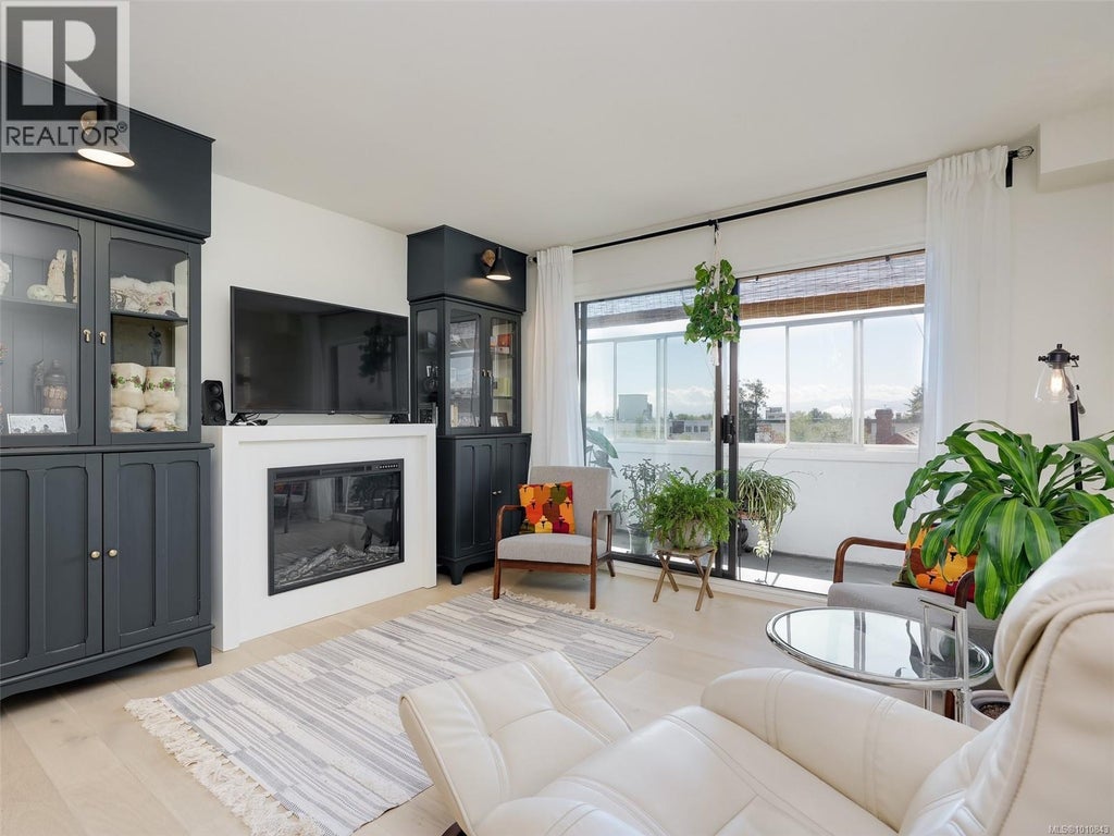 Top-floor 2-bedroom condo with professionally designed updates in a prime Fairfield/Downtown border location! This stylish home strikes the perfect balance between timeless and trendy, offering comfortable living in one of Victoria’s most desirable neighbourhoods. The reimagined kitchen features two-toned cabinetry, wood beams, a chef’s sink, and a custom mural. The open-concept living and dining area is both functional and inviting, with a built-in bar, electric fireplace, and bookshelves. The main bedroom is spacious and serene, boasting 16 feet of built-in wardrobes. Luxe details include marble mosaic tile, designer wallpaper, white oak engineered hardwood floors, and generous storage throughout. Off the living room, a large covered balcony—with views to the Olympic Mountains—functions as a bonus room year-round, offering excellent sound insulation and a peaceful place to relax or work. Enjoy sunny southern exposure on a quiet street, just minutes from Downtown, Cook Street Village, Beacon Hill Park, the Dallas Road waterfront, and a variety of cafés, restaurants, shops, and the Root Cellar. Nearby bike lanes provide easy oceanfront access. This welcoming and well-run strata offers parking, storage, a workshop, and a games room. Recent and upcoming upgrades include a refreshed lobby/main entrance in 2023, with a full list of previous building improvements available. Book your private showing today to experience this chic, move-in-ready home for yourself! (id:6289)