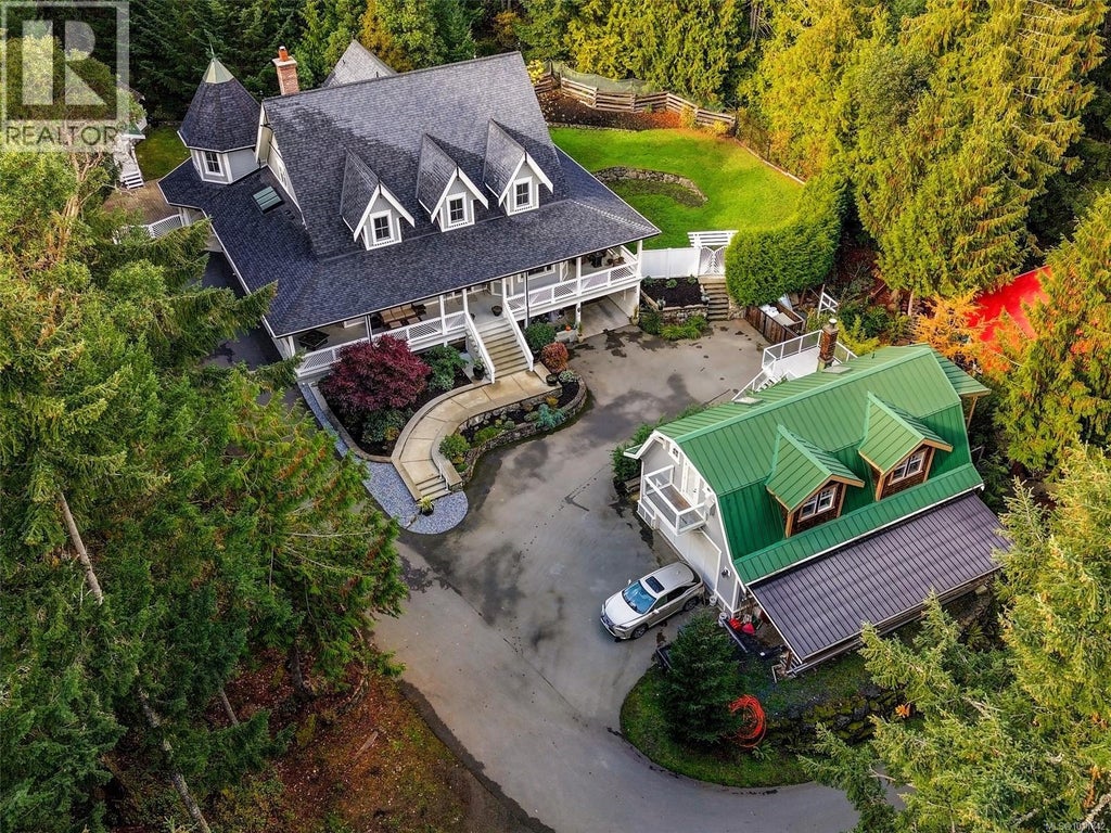 Private, quiet, one of a kind, quality built, luxury rural retreat in beautiful Highlands, 25 mins from downtown Victoria. Featuring close to 3.5 acres, this home is an absolute pleasure to come home to. With close to 8000 sqft, 7 bedrooms and 9 bathrooms it is an entertainer's dream with a gorgeous chef’s kitchen (Wolf stove, SubZero fridge, Miele coffee maker and dishwasher), walk-in wine rm, separate DR, indoor and outdoor sitting areas. The main home has lovely walnut hardwood floors, heat pumps, high-end windows and heated floors. The property generates close to $6000/month revenue from a 1bd suite in the lower level of the home, a private 1bd suite over the incredible workshop and another full and private 2bd suite over the separate 2-car garage, each with sep laundry. Built from scratch within the past 6 years to a very high standard, and even has warranty remaining. This home checks many boxes: luxury, privacy, tranquility and outstanding revenue. (id:6289)