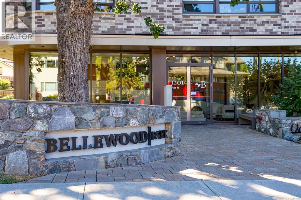 NEW PRICE - Welcome to Bellewood Park, an award-winning community by Abstract, set among majestic heritage Garry oaks on two acres of parkland in historic Rockland. Thoughtfully designed to bring nature to your doorstep, this steel & concrete building offers lasting quality and peace of mind. This Junior 2-bedroom, 2-bath home boasts over 800 sq. ft. of finished living space with hardwood floors, air conditioning, custom closets and a bright open-concept layout. The gourmet kitchen features custom cabinetry, a Wolf gas range, Fisher & Paykel French door refrigerator and double-drawer dishwasher. The spacious primary includes a walk-in closet, while the spa-inspired bathroom offers in-floor heated tile. Step outside to your private heated balcony for outdoor enjoyment year-round. Pet friendly, with secure underground parking, storage locker, bike & kayak areas. Walk to downtown restaurants, Cook Street Village and Dallas Road to enjoy ocean views and seaside paths. (id:6289)
