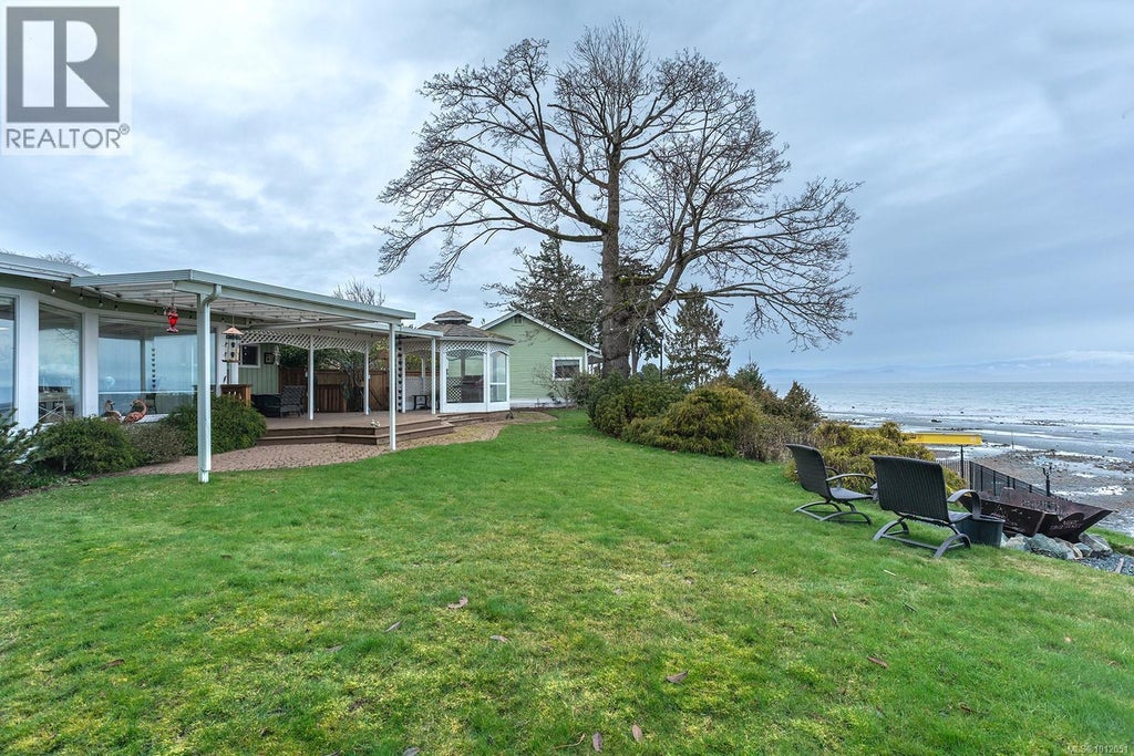 Nestled on a rare .59-acre oceanfront lot, this exceptional property offers breathtaking panoramic views and direct beach access. The main rancher-style home is designed to embrace coastal living, featuring expansive windows that frame the stunning seascape, an open-concept layout, and a spacious deck perfect for enjoying the ever-changing tides. Adding to its uniqueness, a charming carriage home/cottage provides incredible flexibility—ideal for guests, extended family, or an income-generating rental. With its unbeatable waterfront location, ample space, and the tranquility of a quiet seaside street, this is a rare opportunity to own a true Vancouver Island retreat while enjoying the added value of a versatile secondary dwelling. (id:6289)