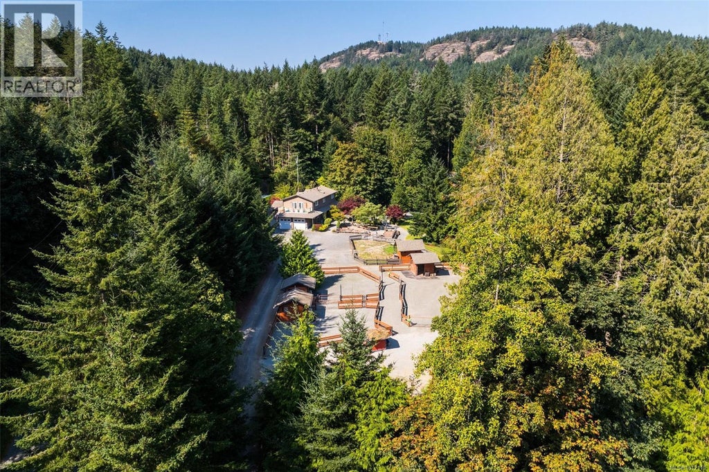A once in a lifetime opportunity to acquire this custom, updated 4 bed + office, 2 bath, 2258sf home on a private, masterfully landscaped, beautifully forested, sunny & mostly level/usable 5.32ac/231,739sf in marvellous Metchosin. This idyllic hobby farm features a plethora of outdoor living areas, fire pit, lush lawns, pond w/water feature, extensive mature gardens, multiple sheds, ''tree house''/studio, 3 barns w/paddocks, riding ring & barn/coop w/fenced area for chickens, rabbits, goats etc & 1km of trails meandering past towering evergreens & waterfall. Tons of parking + large metal garage/barn & over-height dbl garage. Be impressed by the bright, open floorplan, abundance of light & tasteful updates. Spacious kitchen w/island, dining rm opening to large deck, living rm w/serene views thru picture windows & cozy woodstove, office, 3pc bath, laundry rm w/storage & bedroom. Up: huge primary suite, 4pc bath, media rm & 2 bedrooms opening to sunny deck. A rare find & outstanding value! (id:6289)