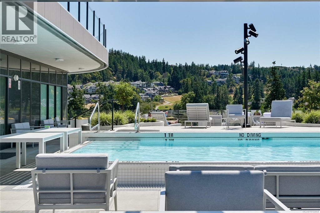 *NO GST* Welcome to ONE BEAR MOUNTAIN—where sophisticated design meets resort-style living in the heart of the Bear Mountain Golf Resort. This elegantly designed 2-bedroom + den corner residence offers 1,313 sq. ft. of bright, open-concept living with a showstopping 721 sq. ft. wraparound patio—a rare outdoor retreat for relaxing or entertaining. Enjoy the peace and privacy of this quiet corner unit, finished with sleek, modern, and premium materials throughout. Floor-to-ceiling windows fill the space with natural light, while features like a gas cooktop, wall oven, integrated Bosch appliances, and a cozy gas fireplace offer both style and function. The spacious primary suite includes patio access, a fully customized walk-in closet, and a spa-inspired 4-piece ensuite. TWO secure parking stalls are included—one equipped with an EV charging station. This concrete-and-steel building offers outstanding amenities: an infinity pool, sky lounge, fitness center, yoga studio, business hub, concierge service, pet wash, car wash, and secure bike storage. Live steps from world-class golf, tennis, scenic trails, and fine dining. Luxury, nature, and convenience—perfectly combined. (id:6289)