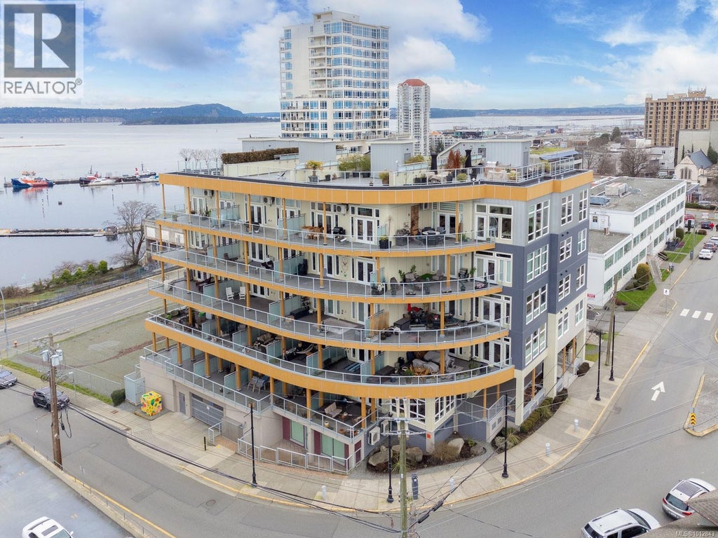 Welcome to your dream condo, perfectly situated just a 5 minutes stroll from Nanaimo's vibrant downtown and waterfront. Step inside to discover an open concept kitchen and living area, featuring elegant heated tile floors and a sleek quartz countertop. The 10ft high ceilings add to the sense of space and luxury. The unit also includes hot water on demand for ultimate convenience. Enjoy your morning coffee or evening sunset on the spacious balcony, offering unobstructed views of the ocean and mountains. The building also features a workout room conveniently located by the lobby. Additional perks include one underground parking spot and the flexibility of allowing rentals. Must see! (id:6289)