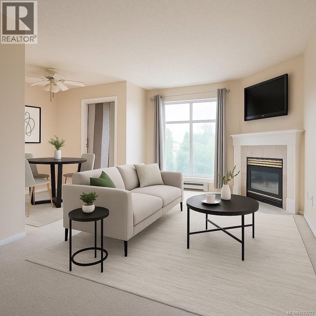 Welcome to Unit 305 at The Bayridge – a bright and inviting 2-bedroom, 2-bathroom condo perfectly situated in the vibrant Hillside–Quadra Village neighbourhood. Offering 917 sq. ft. of functional living space, this southwest-facing corner unit is filled with natural light and features a spacious open-concept living and dining area with a cozy gas fireplace. The kitchen is thoughtfully designed with ample cabinetry and a pass-through to the dining space, making it ideal for both everyday living and entertaining. The generous primary bedroom includes a walk-through closet and 3-piece ensuite, while the second bedroom is perfect for guests or a home office, served by a full 4-piece bath. Step outside to your covered balcony for morning coffee or evening relaxation. Additional highlights include in-suite laundry, secure underground parking, separate storage, and bike storage. Located just steps from Quadra Village cafés, groceries, parks, and transit, and minutes to downtown Victoria, this well-maintained building offers a walkable, connected lifestyle in a sought-after community. (id:6289)