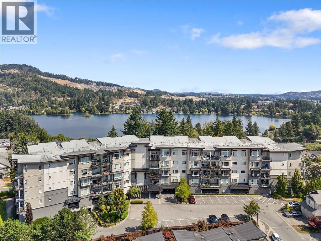 OPEN HOUSE Sat, October 11th, 12:30-2pm. Step into GlenHeights – a serene gem in the heart of Westhills. Langford Lake views from this immaculate modern two-bedroom, two-bath home. Offers a functional layout, nine-foot ceilings, and a large covered 10' x 10' deck. The open-concept kitchen features granite counters, tile flooring, under cabinet lighting, and updated stainless appliances, including a two-year-old LG fridge and microwave. An electric fireplace adds to the cozy feel. Both bedrooms are well-sized and set apart for privacy. The primary includes a walk-in shower and upgraded fixtures. Additional updates include newer carpet, fresh paint, Toto toilets, blackout blinds, and a full-size LG washer and dryer. Efficient geothermal in-floor heating is included in strata fees. One secure parking space, same-floor storage room and bike storage. Pet-friendly building that allows BBQs. Steps from the YMCA, schools, library, parks, trails, and shopping. Call now to book your viewing! (id:6289)