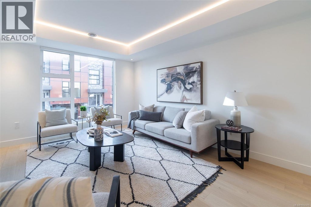 NEW LISTING! Executive end-unit townhome at Paragon Parc, built by award-winning White Wolf Homes. Offering 2,386+ sq ft of refined living, this 3BD/4BA home blends luxury, space & privacy. Soaring rooflines, oversized windows & West Coast design set the tone. Main flr features: 9’ ceilings, gourmet kitchen w/ quartz counters, gas cooktop, wall oven, island, pantry, & deluxe KitchenAid appliances. Open-concept living/dining w/ fireplace, office nook, & powder rm. Stunning primary suite w/ walk-in closets, spa-like ensuite (heated tile, floating vanities, glass shower), + laundry & vaulted ceilings. Lower: media/rec rm, ideal for guests, gym or flex. Add'l features: radiant flrs, remote blinds, EV-ready garage, XL driveway, heat pump, fenced yard & patio backing greenspace. Community garden, kid’s park, trails, shops, airport & DT Victoria mins away. Full new home warranty. Move-in ready —your luxe lifestyle starts here. (id:6289)