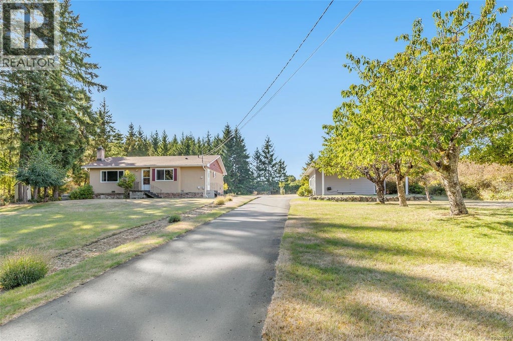 Inspiring Nanoose Bay Acreage! Nestled in a peaceful rural setting in beautiful Nanoose Bay, just 15 minutes from Parksville and North Nanaimo, you will find this sun-soaked 1.19- acre parcel of land hosting a charming 1358?sqft 3?Bed/1?Bath Rancher plus a detached 1?Bed Guest Suite/Workshop. The home boasts an easy-care one-level layout, thoughtful updates including a recently replaced roof, and a south-facing patio with a huge yard framed by tall trees. The acreage features a fenced garden area with fruit trees, ample parking, and flexible zoning. You will also enjoy quick access to shopping, amenities, pristine walking trails, beautiful beaches, and golfing. From a quiet no-through road, an entry drive leads to a generous parking area and this charming Rancher. The spacious Living Room has a large window and a red brick hearth with a propane fireplace for instant ambiance and warmth. To the right is a cozy eat-in Kitchen with wood cabinetry, a stove, fridge, and room for a breakfast table. Adjacent is the Laundry/Mud Room with shelving, dual closets, and an exterior door. A hallway leads to two sunny Bedrooms, a 4-piece Bath, and a Third Bedroom (currently a Dining Room) with access to a bright Family Room where five picture windows showcase the acreage and an electric fireplace adds ambiance. A door opens to a south-facing patio with western exposure, the perfect spot to soak up sunshine, host barbecues, enjoy sunset dinners, or simply relax and embrace the beauty of rural living. The patio looks onto a vast yard framed by towering trees. Steps away, a detached 1 Bed/1 Bath Guest Suite/Workshop features a Kitchen area, Bedroom, Bath, and a Workshop with cabinetry and shelving. The fenced garden area has a variety of fruit trees, incl apple, cherry, plum, pear, figs and grapes. RS-1 residential zoning allows a Home-Based Business, Secondary Suite, or additional accessory buildings. Picture-perfect and packed with potential! Visit our website for more info. (id:6289)