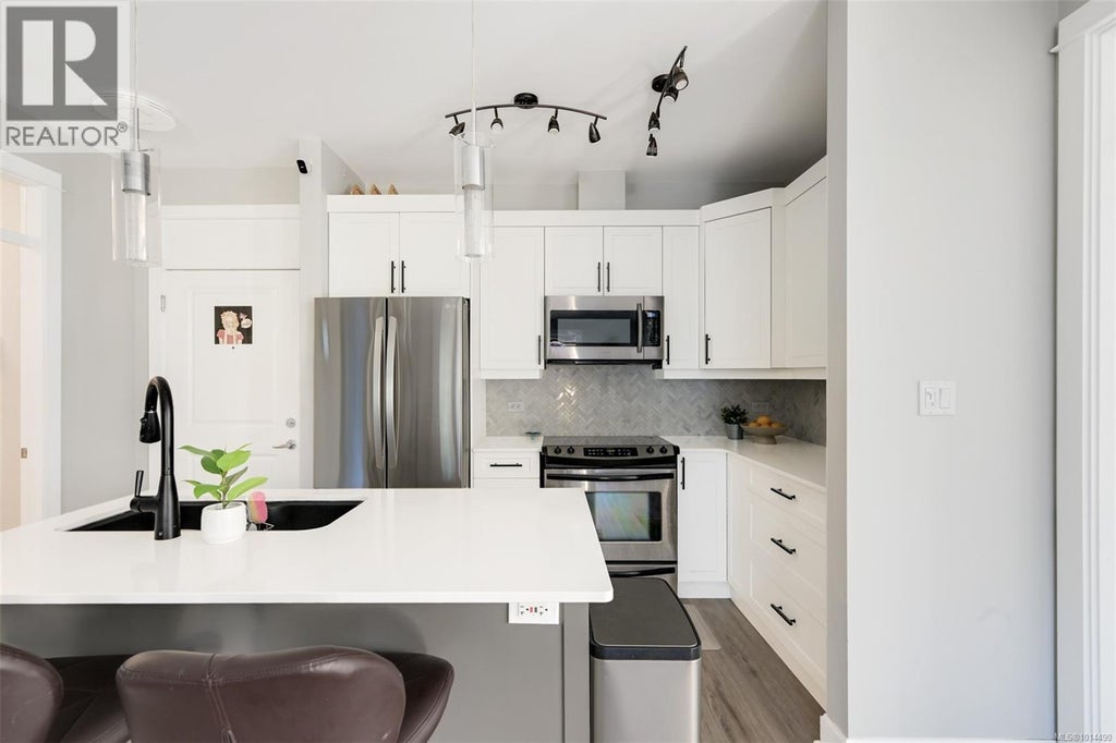 If you’ve been looking for a beautifully updated 2-bedroom condo in a central location, this could be the one. Thoughtfully renovated throughout, this ground-floor home offers a bright and inviting layout that’s move-in ready. The gourmet kitchen flows into spacious living and dining areas, with two generous bedrooms that include a spa-inspired ensuite bath. Large windows fill the space with natural light, a gas fireplace for cozy evenings, and the private walk-out patio—tucked at the back of the building—provides a quiet spot for morning coffee or evening unwinding, away from street noise. The building also offers excellent amenities: an indoor pool, gym, sauna, games room, storage lockers, and underground parking. All this in a location that’s close to the Galloping Goose Trail, shopping, and transit. A stylish home in a convenient setting—ready to enjoy. Pets and rentals allowed. Call today for your private showings or join our open houses Sat, Sept 27, 11-1. (id:6289)