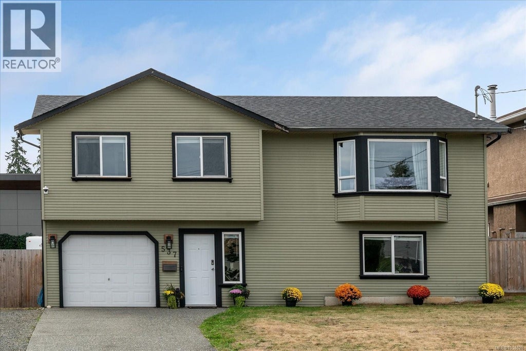 Have you been looking for that renovated, affordable family home with all the big-ticket upgrades already done? Welcome to 537 Deering Street in Nanaimo. This 4 bedroom, 2 bathroom home offers over 1,800 sq ft of living space with a full garage on a large, fully fenced city lot. The main floor features an open-concept layout, a kitchen renovated in 2016, new flooring, fresh paint, and French doors leading to a massive deck perfect for entertaining or enjoying Westcoast summers. Downstairs you’ll find a 4th bedroom/office, rec room, second bath, and laundry with a new hot water tank (2022). Recent updates include a roof with solar vent (2020), heat pump with warranty (2022), modern railings, new appliances, and fencing. The spacious backyard offers room for kids, pets, gardens, or RV/boat parking, and backs onto the brand-new Quality Foods — quiet neighbours and everyday convenience. Move-in ready and close to schools, parks, shopping, and VIU, this home has it all. (id:6289)