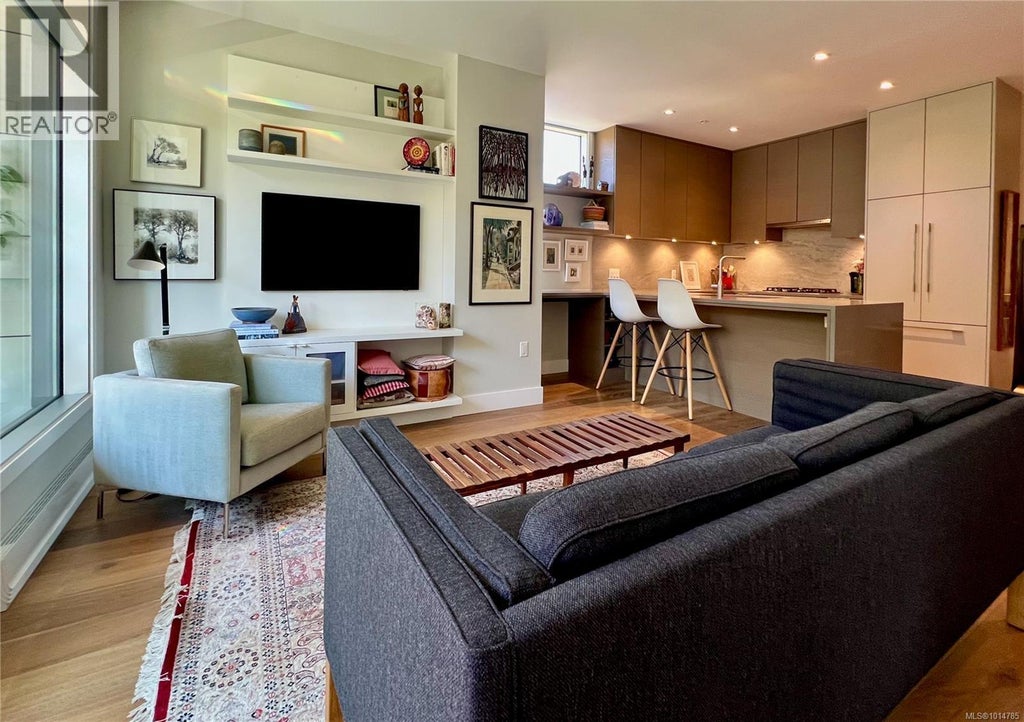 In what must be one of the best locations in Victoria, this beautifully appointed 2 bed, 2 bath corner unit in a luxury boutique building offers stunning unobstructed views of Beacon Hill Park from all rooms and a glorious west-facing balcony. In this nearly new, architect-designed concrete and steel building, the condo offers a modern open concept layout. The chef's kitchen features high end Fisher & Paykel appliances, quartz counters, full height cabinets, a handy office nook and pantry with custom built-ins. Primary bedroom features a smartly configured walk-through closet and a stunning ensuite with heated floors. Electric blinds, gleaming hardwood floors throughout complete the package. The superb location is steps to Cook St, downtown, and the ocean vistas and trails of Dallas Rd. Enjoy the park's wild meadows, manicured gardens, centuries-old oaks, and diverse wildlife. This is a well managed, dog/pet friendly bldg with secure underground parking. A perfect condo and must see. (id:6289)