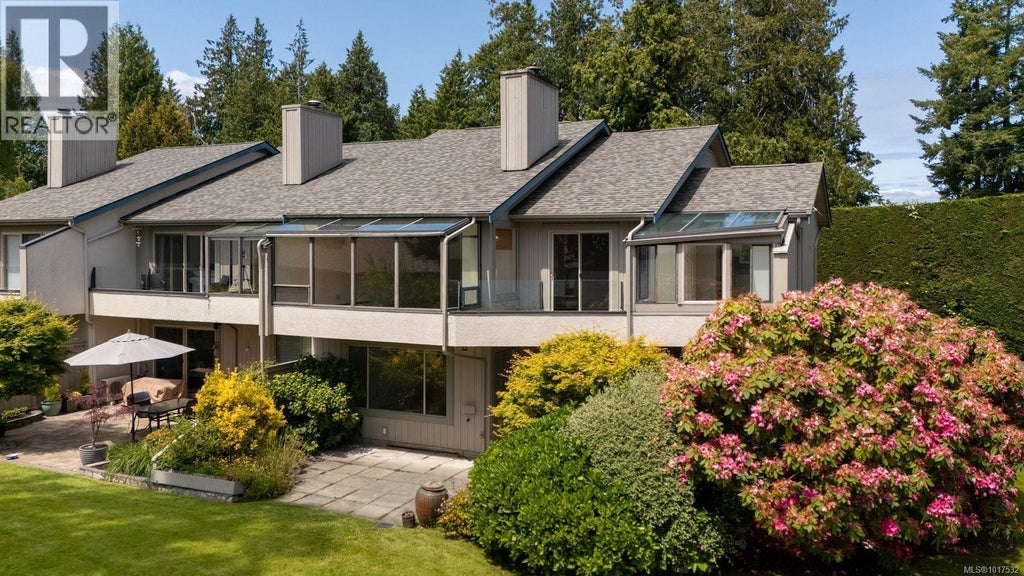 Welcome to Turgoose Point Estates, an exclusive oceanside community offering panoramic views, lush gardens, and private beach access for an exceptional coastal lifestyle. This 3BD/3BA, 1935 sq ft end-unit townhome showcases relaxed sophistication with thoughtful updates throughout. The remodeled galley kitchen features granite counters, stainless appliances, glass tile backsplash, and a cheerful breakfast nook. Soaring 15’ vaulted ceilings, hardwood floors, and a wood-burning fireplace create a warm, light-filled ambiance. Enjoy the sunny patio framed by colourful blooms or savour ocean vistas from your private sheltered balcony. Updated baths, generous storage, and a 2-car garage ensure comfort and convenience. Recent exterior updates include roof, skylights, and paint. Ideally located near Sidney, BC Ferries, airport, and Victoria—just minutes to shops, dining, trails, and recreation. Vacant and move-in ready—embrace the serenity of seaside living today! (id:6289)
