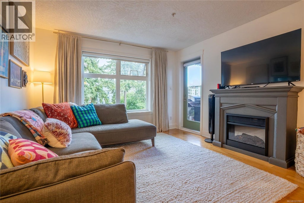 Welcome to The Blackberry at 306 – 2717 Peatt Road, Langford, BC This bright and spacious 2-bedroom, 2-bathroom condo offers 855 sq. ft. of modern living in the heart of Langford Proper. Built in 2008, The Blackberry is a well-maintained, strata-managed building known for its walkable location and contemporary design. The open-concept layout features a large living and dining area with an electric fireplace, leading to a west-facing balcony perfect for relaxing or entertaining. The kitchen includes stainless steel appliances, tile backsplash, and a functional island layout ideal for everyday living. The primary bedroom offers a generous walk-in closet and a 5-piece ensuite with dual sinks, while the second bedroom is perfectly suited for guests or a home office. Additional highlights include in-suite laundry, 8-foot ceilings, and a 4-piece main bathroom. The Blackberry provides secure parking, pet-friendly and rental-permitted policies, and close proximity to shops, restaurants, parks, and transit. If you’re looking for a well-located home with comfort and convenience, this is an excellent opportunity in one of Langford’s most desirable and rapidly growing neighbourhoods. (id:6289)