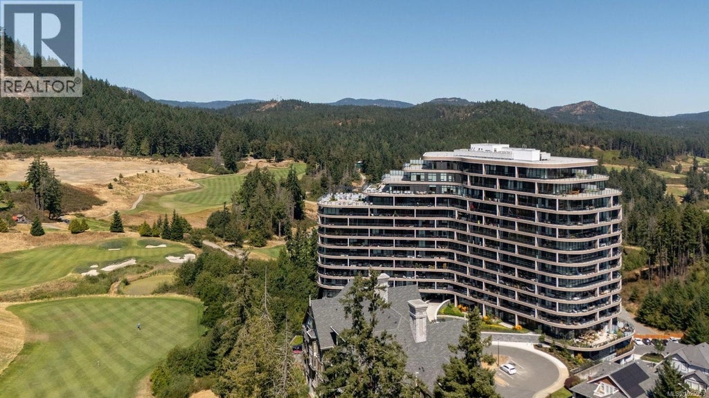 Experience elevated living at One Bear Mountain, an amenity-rich residence where contemporary luxury meets West Coast tranquility.Perched on the 13th floor, this bright west-facing 2 bedroom, 1 bathroom residence offers oak flooring, 9-ft ceilings, and dramatic floor-to-ceiling windows capturing sweeping southwest views over the 18th fairway and toward Mt. Finlayson. The gourmet kitchen is beautifully appointed with Bosch appliances, quartz countertops, an underlit sit up island and sleek Italian cabinetry. The sunlit open-concept living and dining area is anchored by a fireplace and steps out onto the spacious patio with BBQ hookup to unwind or entertain against a breathtaking golf course backdrop. The primary bedroom offers patio access, a walk through closet and 4 piece ensuite. Residents enjoy the 16th-floor Grenoble Sky Lounge, fitness and yoga studio, outdoor pool, sundeck, and business centre. Complete with secure parking, storage locker, bike room, and dog wash station, this home delivers refined, effortless luxury. (id:6289)