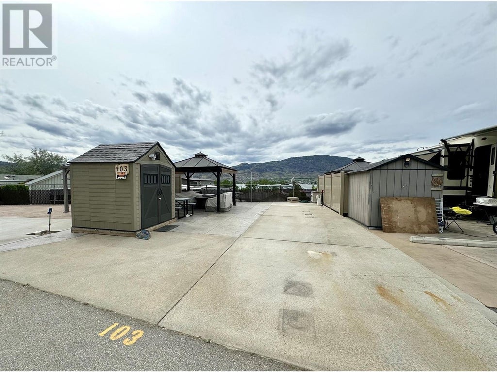 Welcome to your new getaway at Island View RV Resort! Lot 103 presents a rare opportunity to own a spacious, meticulously maintained RV lot with captivating lake views. Tucked away near the back of the park, this quiet and private location offers peaceful enjoyment and is suitable for RVs up to 36 feet. As an added bonus, owners have the option to include the lot in the resort’s rental pool—making it a fantastic opportunity for extra income when you’re not using it. Plus, you're just steps away from the sandy beach and refreshing waters of Osoyoos Lake, making every day feel like a vacation. Designed for effortless outdoor living, the lot comes fully equipped with everything you need to settle in and start making unforgettable memories. Relax under the shaded gazebo, complete with a ceiling fan and power outlets to keep you cool and connected. Host family and friends around the cozy fire table, or enjoy a laid-back meal at the included picnic table and patio set (shown in the last photo). Extras include a large storage shed and a 50-amp hook-up, making it truly move-in ready. Whether you're looking for a personal retreat or a smart investment in the South Okanagan lifestyle, Lot 103 has it all. Just bring your RV, family, and friends—paradise awaits! (id:6289)