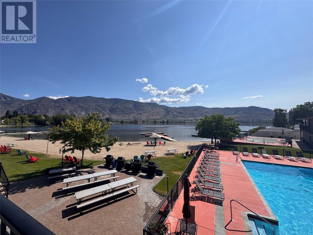 RECREATIONAL WATERFRONT UNIT on Osoyoos Lake ! Enjoy panoramic lake views, one of THE BEST sandy beaches in town, boat dock for rental when you bring your boat, heated outdoor pool, and BBQ area—everything you need for the perfect Osoyoos getaway! This unit has a Queen Bed and a Single over Double Bunk. - just bring your suitcase! Bright and charming upper-level studio-style suite sleeps 4/5, with a smart layout and stunning views of the lake, pool, beach, and surrounding mountains. Self-managed strata with resort-style rentals. Prime location—just steps to Main Street shops, dining, and minutes to golf and wineries. One of the most affordable lakefront ownership opportunities in Osoyoos. Don’t miss out on this rare find PRICED TO SELL! Rentals managed through Safari Beach motel and no restrictions on owner use. (id:6289)