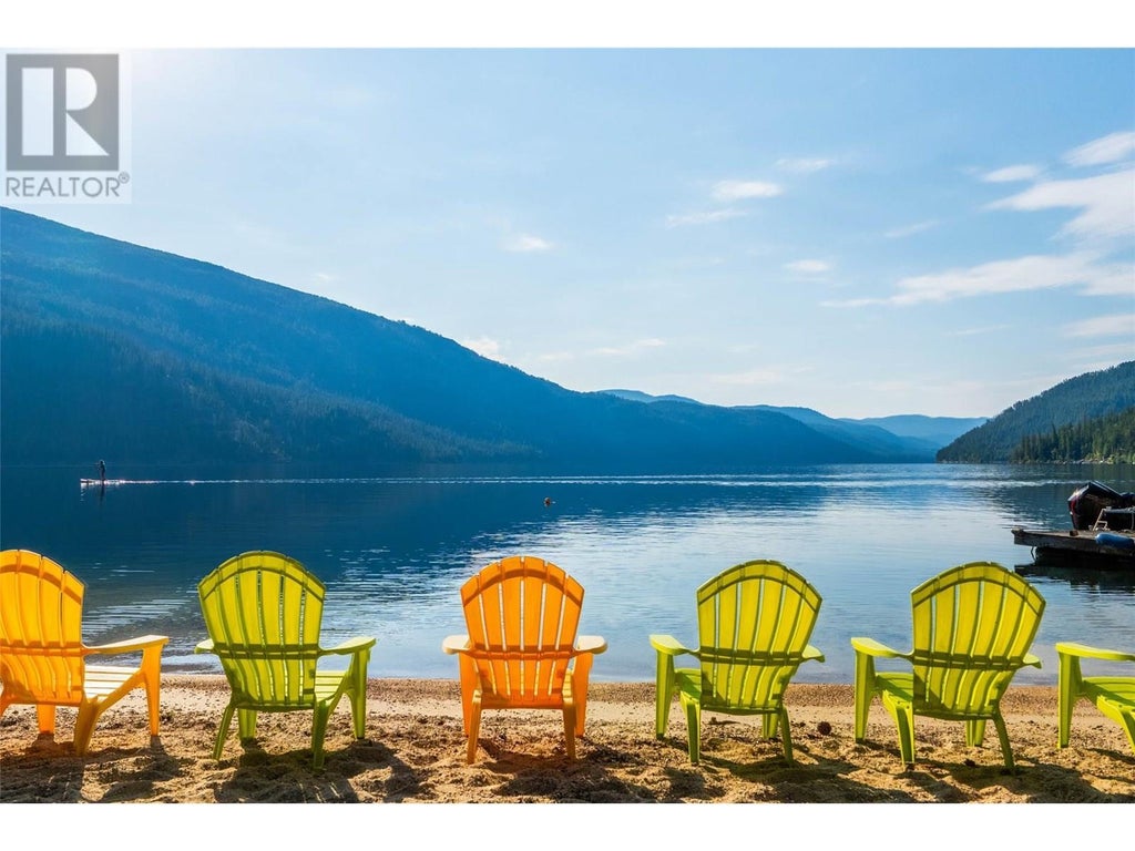 Rare opportunity to own a luxury off-grid resort inspired home located outside of the foreign buyer ban and speculation tax. Escape to a pristine 17.3-acre, boat-access-only property on Christina Lake. A custom-built 2-bed, 2-bath home, constructed in 2012, offers a sophisticated retreat with breathtaking lake and mountain views. The open-concept design features high-quality oak flooring and fir and hemlock wood paneling, creating a contemporary yet warm atmosphere. Expansive sliding bi-fold doors blur the line between indoor and outdoor living, extending your space onto a large, wrap-around deck. The property boasts an additional 2 bunkies plus incredible 700-foot beachfront and over 1 km of groomed hiking and biking trails. Power is supplied by a new Pelton wheel system fed by Red Ochre Creek, supplemented by solar panels, ensuring a reliable off-grid energy source. A state-of-the-art, on-demand propane hot water system provides instant hot water. This is more than a home; it's a rare, once-in-a-lifetime opportunity to own a private retreat destination. No expense was spared in creating this stunning off-grid haven. Dip your paddle into calm waters and start living the dream on one of BC’s warmest tree lined lakes (id:6289)