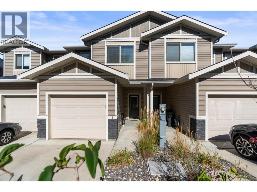Welcome to Terraces at Okanagan Ridge. This 2 bedroom, 3.5 bath, townhome is the perfect starter home for young families, rental investors, or a great way into the market. With great living space, a very functional floor plan, and done with great taste and decor, it is sure to impress. This home has three finished floors, 9' ceilings, two large bedrooms with their own ensuite and walk-in closets, large convenient laundry area, a separate family area with full bath in the lower level, loads of windows and a northwest valley view. There is a large deck off the main dining area and a patio and fenced yard off the lower level family area. The attached single car garage has some extra storage space and an additional spot of open parking. The strata rules allow for two dogs OR two cats. This townhome is very well done and centrally located close to both senior and elementary schools, parks, and shopping amenities. (id:6289)