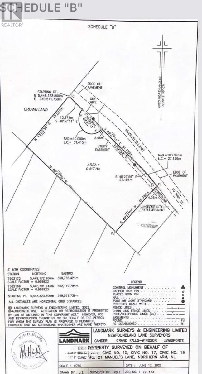 Great Potential! Owner is willing to subdivide as property ideal for multiple building lots. This partially cleared, 1.03 Acre lot is located in a quiet area on Manuel's Lane, Northern Arm. Call an agent today for further details. Survey completed in 2022. Will require septic, town water available. (id:6289)