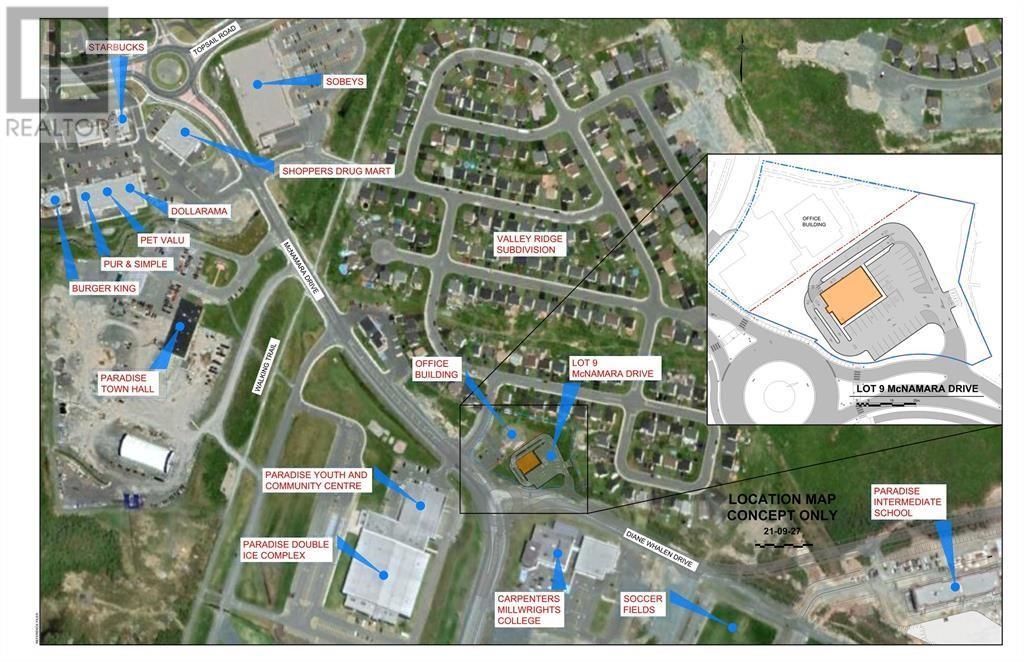 Excellent commercial location in the center of a bustling district of Paradise. Located on the corner of McNamara Drive and Dianne Whelan Drive, this location has a proven traffic count that continues to grow year by year with many businesses, recreation facilities, walking trails and schools within walking distance. This location is ideal for a multitude of business including retail, professional offices, restaurants (drive-thru options available), warehouses, and recreation. Pictures indicate a variety of concept plans that would suit a wide range of businesses. (id:6289)