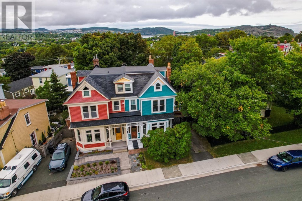 Gracious character home located in the uber trendy Georgestown neighborhood within walking distance to Churchill Square, Memorial University, and the downtown core. Presenting a unique opportunity, pride of ownership is evident in this classic, well-cared for home with significant upgrades. The bright and spacious main level with oversized windows features the spectacular staircase, with a lamp on the newel post, high ceilings, outstanding plaster and custom millwork. With entertaining and family living in mind, the main floor layout consists of the adjoining living room with walk in bay window and fireplace and dining room, large eat-in kitchen with cozy woodstove (installed 2021), pantry, and commercial grade propane range. Side extension allows for a spacious mudroom, powder room and convenient main floor laundry. The equally impressive second floor houses three very well-proportioned bedrooms, main bathroom, and office. The top floor has a loft style bedroom, nestled in the cozy roofline, and full bathroom with deep soaker tub. The high ceiling basement offers tons of storage space. Upgrades in recent years include 3-head mini splits for efficient heating and cooling, new hot water boiler (2025), vinyl windows, fully rewired, and remaining knob and tube wiring to a few light fixtures removed (2025). Significant system upgrades since ownership including 400AMP electrical service, electric hot water furnace providing comfortable heating throughout 6 zones, insulation improvements (spray foam and blown in) and extra storage area with high ceiling under the side porch with walk out backyard access. This incredible home, complete with driveway, fenced rear garden and reinforced rear deck suitable for a hot tub, awaits its new owner!! Don’t Wait! No conveyance of offers until Tuesday, September 23 @ 3:00pm and left open for acceptance until 8:00pm the same day (id:6289)