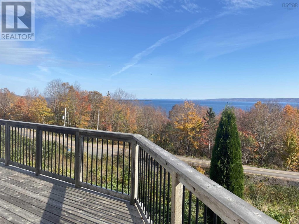 This 2 BDRM, 2 BATH mini home is perched on a hill overlooking the beautiful Bras d'Or Lakes, and sits on 30 Acres of land. This 16x60 Maple Leaf home was built in 2009, and has a large 3/4 wrap around deck built in 2015, along with the 20x17 detached wired garage. 8x8 shed for extra storage. Plenty of parking for several vehicles. The living room has a propane fireplace. Eat in Kitchen comes with fridge, stove, overhead microwave, dishwasher, and amazing water views. There is a bedroom and full bath at one end and the master bedroom and ensuite at the other. Stackable washer and dryer included. Located just five minutes from the Marble Mountain Beach, 15 minutes to the Dundee Resort and Golf Club, and 30 minutes to the town of Port Hawkesbury. (id:6289)