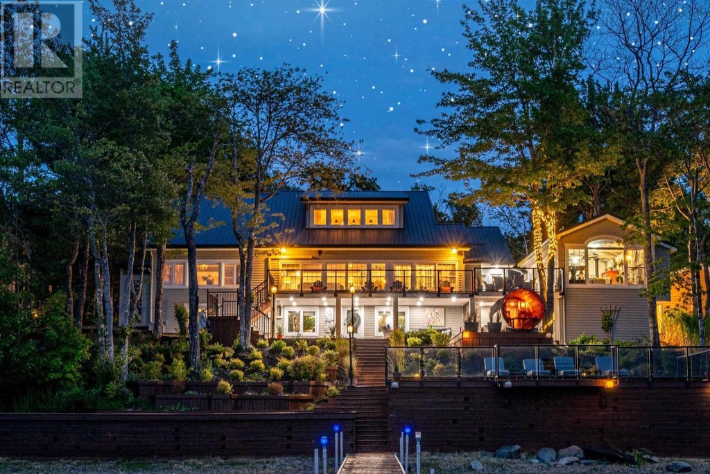 Welcome to 22 Parkview Waterfrontage on Grand Lake This stunning home offers the feeling of living at your very own private resortyour perfect escape awaits. Beautifully landscaped front and back and wrapped in timeless Cape Cod wood siding, the property is designed for relaxation, entertainment, and luxury living. Step into the custom-built chefs kitchen, complete with induction and gas cooktops, plus a double BBQideal for hosting and cooking with a view. The kitchen flows seamlessly onto a spacious upper deck with stunning lake views. Beyond the elegant dining area lies the family and living space, filled with natural light pouring in from the lakefront windows. Just off this central living area, the custom-designed office offers built-ins and a full wall of windowsyet another space with incredible lake views, creating a peaceful and inspiring place to work. Outdoor living is next level with two expansive decks, a new dock with deep anchorage, and multiple fireplaces indoors and out. Unwind in the cedar-lined, electric-powered sauna, soak in the hot tub just off the main floor bedroom, or sip wine from your custom wine storage roomall while taking in the spectacular views and sunsets. This four-bedroom home includes two bedrooms with private ensuites, including the spacious primary suite, which features a walk-in closet and a luxurious bath. In-floor heating in the entryway and main floor bathroom adds warmth and luxury underfoot. The home is also wired with a back-up generator, ensuring peace of mind year-round. Book your private viewing todaytheres so much more to discover. Come see for yourself you wont want to leave! (id:6289)
