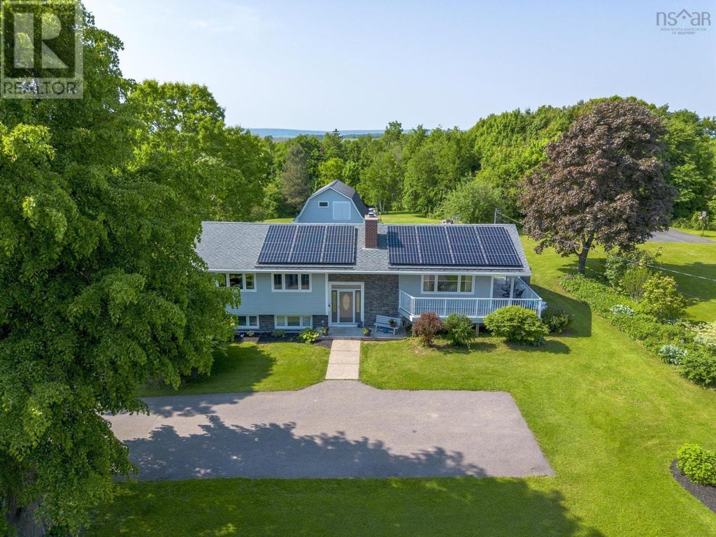 An exceptional opportunity awaits with this large 5-bedroom, 2-full bath family home, perfectly situated on 3.30 acres directly across from Ken Wo Golf Course. This property has been maintained and upgraded, including all new windows and exterior doors, architectural shingles, an updated electrical panel, a generator panel, and two heat pumps with five heads. You'll appreciate the cost-effective heating, with installed solar panels contributing to remarkably low heating costs. The home has an EnerGuide rating of 87 GJ/year. Impressive curb appeal, featuring a beautifully landscaped lawn and an added stone front. Outdoor entertaining is a true delight with a spacious wrap-around deck and a dedicated BBQ area. The property also includes a 22' x 24' two-story wired barn-style garage, perfect for hobbies or storage. Investors will find significant development potential with the R3 Zoning. The unbeatable location provides easy access to Hwy 101, proximity to the LMCC, transit bus, backs on the the Harvest Trail and walking distance to all New Minas amenities. A full list of upgrades is available upon request. (id:6289)