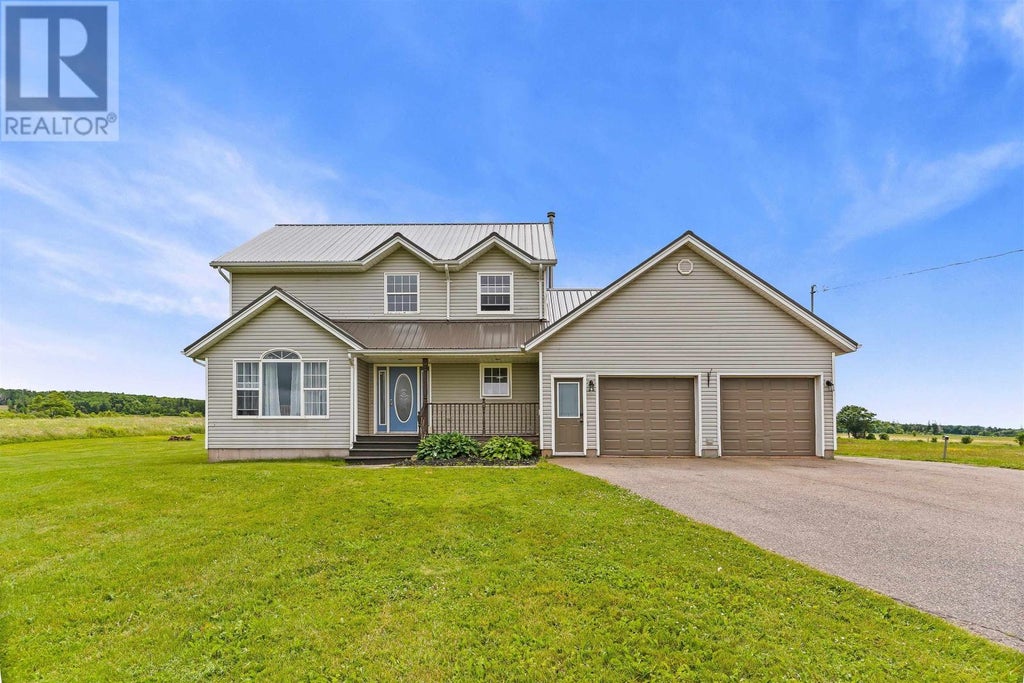 Spacious Country Living on 1.50 Acres .Just Minutes from Kinkora Welcome to your new home in the peaceful countryside! This spacious property sits on a generous 1.50 acre lot and includes a 16x24 shed and a 2 car garage perfect for storage, hobbies, or extra workspace. The home features a new steel roof with solar panels, combining durability and energy efficiency. Inside, you will love the open-concept kitchen, dining, and living room, ideal for modern living and entertaining. The kitchen boasts newer appliances and will have a brand new countertop installed prior to closing. A patio door off the kitchen opens to a large back deck, perfect for enjoying sunny afternoons or evening BBQs. The cozy dining area includes a wood stove and offers plenty of space for family gatherings. A convenient laundry room and half bath complete the main level. Upstairs, the expansive primary suite features a walk in closet, while two additional good sized bedrooms offer flexibility for family or guests. The full bathroom includes a large soaker tub and a walk in shower, providing a spa-like experience at home. The partially finished basement adds bonus space for recreation, storage, or future development. Located just 5 minutes from Kinkora, where you'll find local favorites like an ice cream bar and Chez Shea spa, and only 30 minutes to Charlottetown or 15 minutes to Borden-Carleton, this home blends rural charm with convenient access to town amenities. Do not miss this great opportunity for country living with modern comforts. Book your viewing today! (id:6289)
