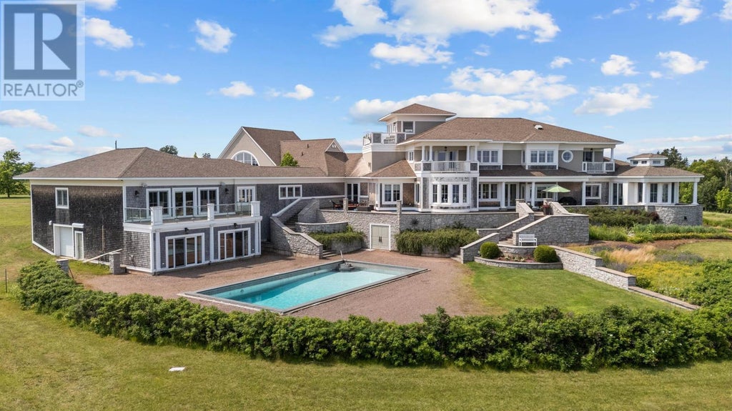 Discover an unparalleled opportunity with this stunning premiere home on Prince Edward Island, a true masterpiece poised to redefine luxury living. Spanning an impressive 9 acres and boasting over 1,400 feet of waterfront along the renowned Mill River, this home, known as Birdsong, was constructed to commercial standards, featuring an ICF foundation, concrete pours between floors, and an 800 amp power entrance with commercial generator.. The expansive property includes a three-car garage on the main level, a two-car garage on the lower level, and a large swimming pool, perfect for entertaining. With three meticulously finished floors, over 17,000 sq feet this residence offers five bedrooms, eight full baths, and three half baths, alongside two guest suites in an attached home, complete with a full entertainment area for poolside gatherings. Enjoy the luxury of four kitchens, a private wine cellar, and a games room with breathtaking views of the river. With high-quality finishes like Brazilian hardwood and granite countertops, as well as unique features such as a dumbwaiter , an advanced sound system, plus over 10 pages of incredible features available through your agent , this exceptional home is a must-see. Located just minutes from Mill River Golf Course and originally valued at over $8 million to build , this property represents the best buy on PEI for qualified buyers seeking a peaceful retreat or a wise investment. Embrace the chance to own a breathtaking piece of paradise, where relaxation and entertainment converge seamlessly all in one of the best places in the world to live , a destination like no other. (id:6289)