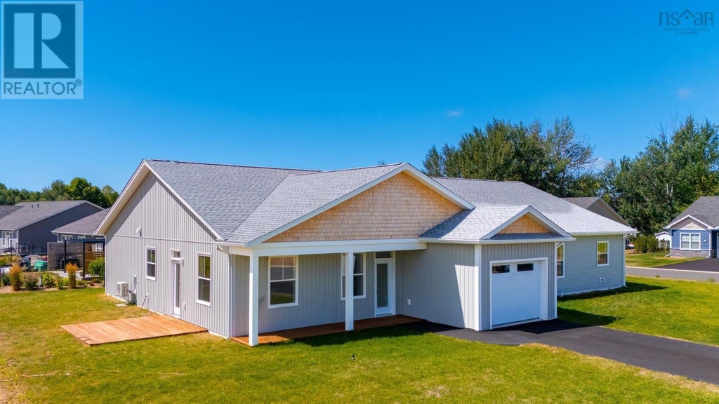 Welcome to 16 Gala Drive, a beautifully designed 3-bedroom, 2-bath semi-detached home in the lively town of Berwick. Perfectly positioned on a corner lot, this one-level home delivers the convenience and cost savings of a semi while offering enhanced privacy with no shared front façade. Built with modern efficiency in mind, the home features a large heat pump for year-round comfort and an airy open-concept design. At the heart of the home, the kitchen seamlessly flows into the dining and living areas, creating a true great room. A center island makes the kitchen ideal for both everyday living and entertaining guests. Upgraded kitchen appliances are included for a move-in-ready experience. The private primary suite includes a stylish walk-through closet with barn door detailing and a full ensuite bath. Two additional bedrooms and a second bathroom provide comfortable accommodations for family, guests, or a home office. Located within walking distance to Berwick's shops, restaurants, and recreation facility. (id:6289)