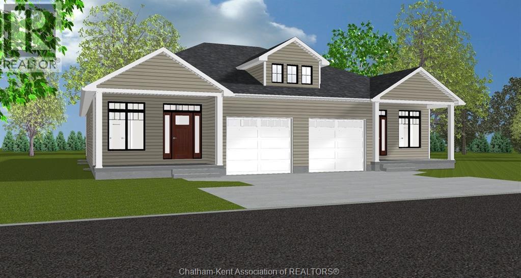 Welcome to Dresden's newest development known as Rolling Acres Subdivision. This to be built 1302 square foot 2 bedroom, 2 bathroom semi-detached bungalow is in a country-like setting in a brand new neighbourhood. Built by reputable local home builder, Depencier Builders, this home comes with premium quality 'James Hardie' siding exterior finishes. Buyer to choose their interior finishes from an endless variety of selections. With everything conveniently located on one floor, you will have a list of upgrades to choose from to personalize the home to your liking. Open concept kitchen and great room features 9 foot ceilings throughout the main floor. Primary bedroom with 4pc ensuite and a walk in closet. Front and rear covered patios. This home also features main floor laundry, E.R.V. & full unfinished basement with the option to finish at the time of construction. Option to rent or own the hot water tank. H.S.T. included in the purchase price. H.S.T. rebate assigned back to the builder. Please note: The exterior photos are renderings and the colour is not exact. (id:6289)