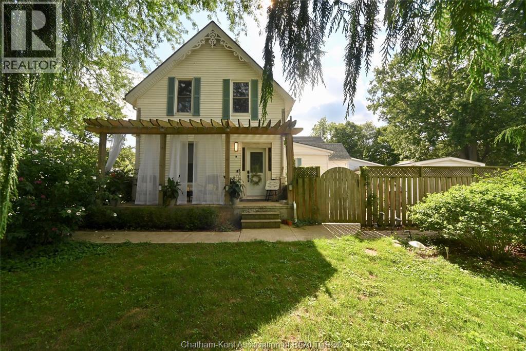 This 3 bedroom Victorian beauty embodies all of Ridgetown's classic small town charm and character. From the gingerbread gable trim outside and breezy private front porch shaded and hidden from street view by mature trees and gorgeous rose of sharon hedges, to the original interior wood trim and hardwood floors with window aprons, original bannisters and the decorative arch between living and dining rooms. High ceilings and large windows create an airy interior with light neutrals. The kitchen and both full bathrooms are delightfully done. Upstairs are two bedrooms (one being a very large primary) and a bathroom with tub/shower and on the main floor is another bedroom with cheater entry to the full main floor bathroom. What's unique here is that the main floor is set up for a separate unit (currently used as an Air BnB) with the aforementioned bedroom, bathroom and a kitchenette/den able to be self-contained with rear entrance access, great for mature family shared living or extra income. If not, the layout still works when used as a whole home. There's also an ideal sitting spot in the enclosed porch off the kitchen, an office nook, and the sweetest little loft to hide away in, above the main floor laundry room. Fenced area for dogs, kids, or separate outside Air BnB space and a detached single car garage. If you're searching for the simple life in surroundings that couldn't be more quaint, this is it! (id:6289)