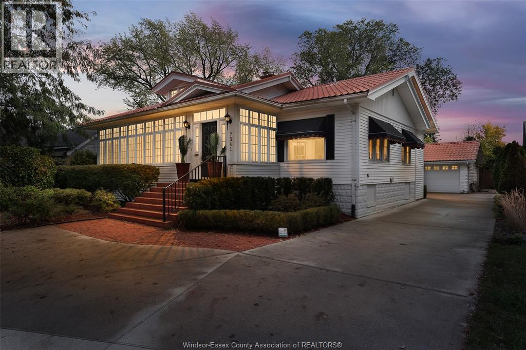 Built in 1900, this Riverside treasure continues to shine brightly, nestled among some of Windsor's most prestigious addresses along the coveted Golden Mile. Welcome to 7341 Riverside Dr E. — a captivating bungalow that seamlessly combines timeless charm with modern comforts. This distinguished residence features two inviting bedrooms and two full bathrooms, including a splendid primary suite with an ensuite bath and walk-in closet. The large, enclosed sunroom offers a tranquil retreat, while the expansive living and dining area boast gleaming hardwood floors and a cozy fireplace, perfect for gatherings and entertaining. The eat-in kitchen is equipped with built-in appliances, and the adjacent family room, complete with a convenient main-floor laundry center, enhances everyday living. The partially finished basement provides additional versatile living space and abundant storage solutions. Outdoors, you’ll discover a detached 2½-car garage and a verdant backyard oasis — an oversized retreat featuring an in-ground pool and a charming bunkhouse (with power) ideal for summer sleepovers and endless summer fun. Don’t miss this rare opportunity to own a one-of-a-kind home rich in history and elegance. (id:6289)