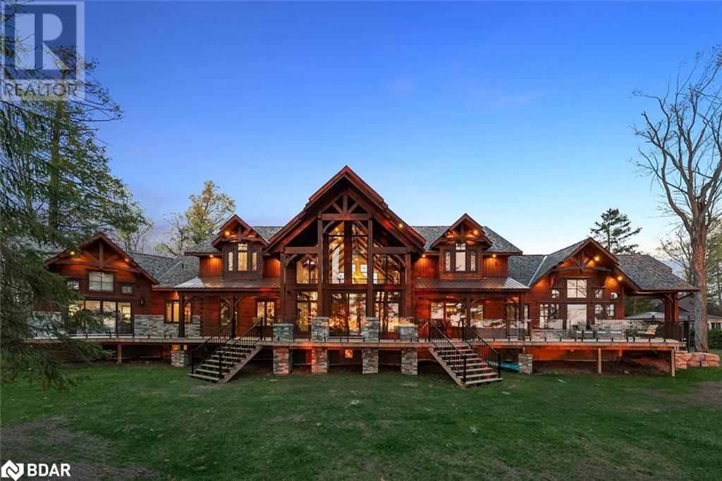 Award-Winning Confederation Luxury Log Home Masterpiece (Living Magazine's 2022 Log Home Of The Year) Custom Built In 2020 With 300Ft Of Direct Sandy Bottom Exclusive Waterfront Situated On A Fully Private Sprawling 3.5+ Acres. Featuring 9 Bedrooms & 7 Bathrooms, Offering 10,000 Finished Sq/F Of Extraordinary Crafted Living Space, W/23Ft Soaring Cathedral Ceilings, Grand Floor To Ceiling Windows With Stunning Panoramic Views O/L The Gorgeous Sunny Shores Of Lake Simcoe. Impressive Professional Fine Finish Craftsmanship Including Outstanding Wood Ceilings, Beautiful Solid Beams, Timeless Timber Walls & Custom Millwork With Elegant Stone Detail T/O. 4 Stop Elevator Provides Comfort & Ease. A Gorgeous Chef's Kitchen Welcomes You & Offers Solid Stone Counters, Pantry & Butler Station & Much More. The Primary Bedrm Offers Breathtaking Water Views Vaulted Ceilings, Walk-In Closet & Large Ensuite Bath. Spacious Sun-Filled Nanny Suite W/2 Large Bedrms, Full Bath & A Superb Patio. The 2nd Level Is Open To The Main W/Expansive Water Views, 2 Additional Primary Suites Both W/Ensuite Baths. The Entire Lower Level Is Complete & Offers A Fabulous Spa Including Steam, Sauna, Shower & More. Also Included Is A Top Of The Line Golf Simulator, Rec & Games Room, Fully Stocked Wet Bar, Gym Area, Additional Auxiliary & Guest Bedrms, Lounge Area & So Much More! Multiple Walk-Outs To Covered Wrap-Around Private Entertainment Deck O/L Lake Simcoe. B/I Direct Access To Oversized Garages, 5 Bays Total Including 1 Bay For RV Parking. Completely Surrounded By Nature's Beauty & Majestic Towering Pine Trees. This Unique One-Of-A-Kind Estate Is A Blend Of Luxury & Natural Beauty With A Comfortable & Unparalleled Offering. Custom Built For Both Lavish Celebrations & Tranquil Quiet Moments. Whether Hosting Family Gatherings Or Inviting Friends & Associates For An Evening Get-Together, Enjoy The Westerly Sunset Night After Night. This Divine Beauty Of A True Confederation Log Home Is Sure To Impress! (id:6289)