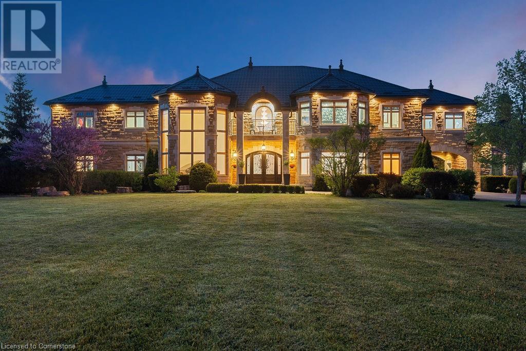 Experience Elevated Living at this Spectacular North Burlington Masterpiece in an Exclusive Enclave of Prestigious Estates. Set on a serene 2.5-acre lot, this luxurious home offers approx. 8,700 SF of exquisitely finished living space, where sophistication meets comfort and innovation. Designed for discerning buyers, this 4-bedroom, 7-bathroom residence delivers the ultimate lifestyle. Gourmet custom kitchen by Gravelle, with extensive solid wood cabinetry, granite counters, hidden doors to large pantry and high-end SS appliances. The walk-out basement is a next-level entertainment hub with Star Wars Sci-Fi theme. Featuring a cutting-edge games room, a dedicated home theatre with immersive 7.1 Dolby surround sound, 12' screen and starlight ceiling. Including flexible space that could easily serve as a 5th bedroom, complete with generous storage. Step outside to a peaceful retreat—gather around the stone fire pit or take a scenic stroll along the nearby Bruce Trail. Despite the private, nature-filled setting, you're only minutes from the schools and amenities of Burlington, blending secluded luxury with urban convenience. This remarkable home defines upscale living. Whether you're hosting grand celebrations or enjoying quiet moments, this is where modern luxury meets timeless tranquillity Please click on the more information link for all luxury features and all inclusions and click on more photos for floorplans. 10+++ (id:6289)