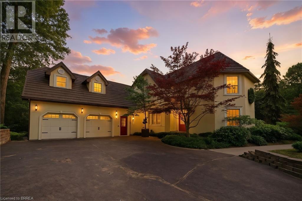 Welcome to this beautifully updated estate home on over half an acre in the quiet community of Lynedoch, just minutes from Delhi. Set on a private cul-de-sac and perched on a hill, this 3,265 sq.ft. residence offers exceptional living space along with a detached 740 sq.ft. guest house and a stunning in-ground pool (2022). Built in 1992, the home has been extensively upgraded and meticulously maintained. The grand foyer with a circular staircase sets an elegant tone. The formal living room features hardwood flooring, a custom colonial mantel, and gas fireplace. A chef’s kitchen includes JennAir appliances, granite counters, and a bright breakfast area with patio walk-out. The spacious family room boasts cathedral ceilings and skylights, while a main floor office offers high-speed internet access, perfect for working from home. A powder room and main floor laundry complete the level. Upstairs, the octagonal master suite is a private retreat with high ceilings, a gas fireplace, and a renovated five-piece ensuite with a double vanity, large glass shower, and whirlpool tub. A private guest wing above the garage includes two additional bedrooms. The detached guest house is fully equipped with its own furnace, A/C, and a three-piece bath—ideal as an in-law suite, Airbnb, or home office. The gated property features mature gardens, patios, a pergola, and a large driveway with extra parking beside the oversized double garage. Major updates include a steel roof (2010), stucco exterior (2017), windows (2015, 2017), hardwood floors (2022), epoxy garage flooring (2013), and updated fireplace and mantel (2014). Additional features: Miele washer/dryer (2013), fridge (2017), dishwasher (2017), microwave/convection oven (2014), water softener (2013), UV light and filter (2018), cistern (2013), well pump (2019), irrigation (2017, 2019), central vac (2021), and water heater (2019). A truly move-in-ready home with luxurious features in a peaceful setting. (id:6289)