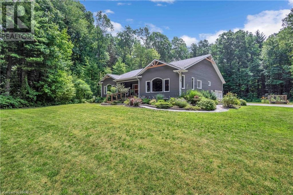 Tucked away on 8.5 acres of pristine forest, this exceptional country estate offers a rare combination of high end custom design, luxurious comfort, and total privacy—creating a peaceful retreat unlike anything else on the market! A long, winding laneway sets the tone as you arrive, leading through towering trees to a beautifully crafted home completely surrounded by nature. With its own private walking trails and endless greenery views, this property feels like your own woodland wonderland. Inside, soaring cathedral ceilings and oversized windows flood the space with natural light and frame the lush landscape in every direction. At the heart of the home is a stunning chef’s kitchen, anchored by a 9-foot island, high-end appliances, double ovens, and elegant finishes—perfect for hosting unforgettable gatherings or cozy nights in. The main floor features three spacious bedrooms, including a tranquil primary suite with a spa-like ensuite complete with a freestanding clawfoot tub, walk-in closet, and serene forest views. The other two bedrooms are connected by a beautifully designed Jack and Jill bathroom, offering each room its own ensuite-style access for elevated comfort. Fully finished lower level, thoughtfully designed for entertaining and relaxation. Enjoy movie nights in your own home theatre, unwind in the lounge area, or host guests at the custom-built wet bar in the expansive rec room. Every corner of this home reflects quality, craftsmanship, and care. A double attached garage plus shed offer secure parking and storage, with endless additional space for future expansion. With manicured gardens, a raised vegetable bed, and trails that wind through the trees, the outdoor space is just as magical as the interior. Whether you’re seeking a private family haven, multi-generational retreat, or simply a slower pace surrounded by nature, this property offers endless potential and true lifestyle appeal—just a short drive to town. (id:6289)