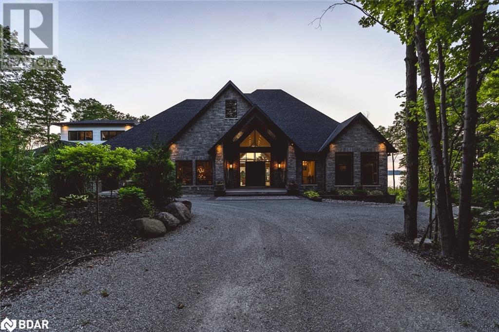 NEWLY BUILT ARCHITECTURAL MASTERPIECE ON 2.4 ACRES WITH PANORAMIC WEST-FACING VIEWS OF GEORGIAN BAY! Just 25 mins from Midland & 90 mins from the GTA! Nestled within the exclusive Cedar Ridge community, along with nearby trails, parks & schools. Step through the grand timber-framed entrance, where oversized wooden doors welcome you into a world of sophistication. The living spaces are adorned with oak plank flooring, soaring 10’+ ceilings, oversized doors/windows & built-in speakers. The great room is truly spectacular, with 20’ cathedral ceilings, porcelain-faced linear f/p & floor-to-ceiling windows that perfectly frame the water views. The professional kitchen showcases quartz countertops, a massive 5’x12’ island & top-of-the-line Thermador appliances, including a 6-burner gas cooktop, double wall oven & full-size fridge/freezer with an integrated wine fridge. Entertain in style with a built-in servery featuring a second dishwasher, sink & built-in coffee maker. Enjoy uninterrupted views & sunsets over Georgian Bay, thanks to seamless glass railings on the covered timber-framed deck. The expansive primary bedroom offers stunning views of the bay, an impressive w/i closet with built-ins & a luxurious 6pc ensuite with a dual w/i shower, soaker tub with water views & dual sinks. Ascend to the upper loft featuring a cozy f/p, 14’ vaulted ceilings & water views. The finished w/o basement is designed for entertainment, with a spacious family room, custom gym & home theatre with a wet bar. Two lower bedrooms with full-size windows, a 4pc bathroom with heated floors & a built-in cedar sauna provide a comfortable retreat for guests. Outside, the landscaped firepit area & expansive yard offer endless opportunities for enjoyment. With a new septic system, drilled well & integrated sprinkler system, every detail of this home has been meticulously crafted to ensure comfort & peace of mind. (id:6289)