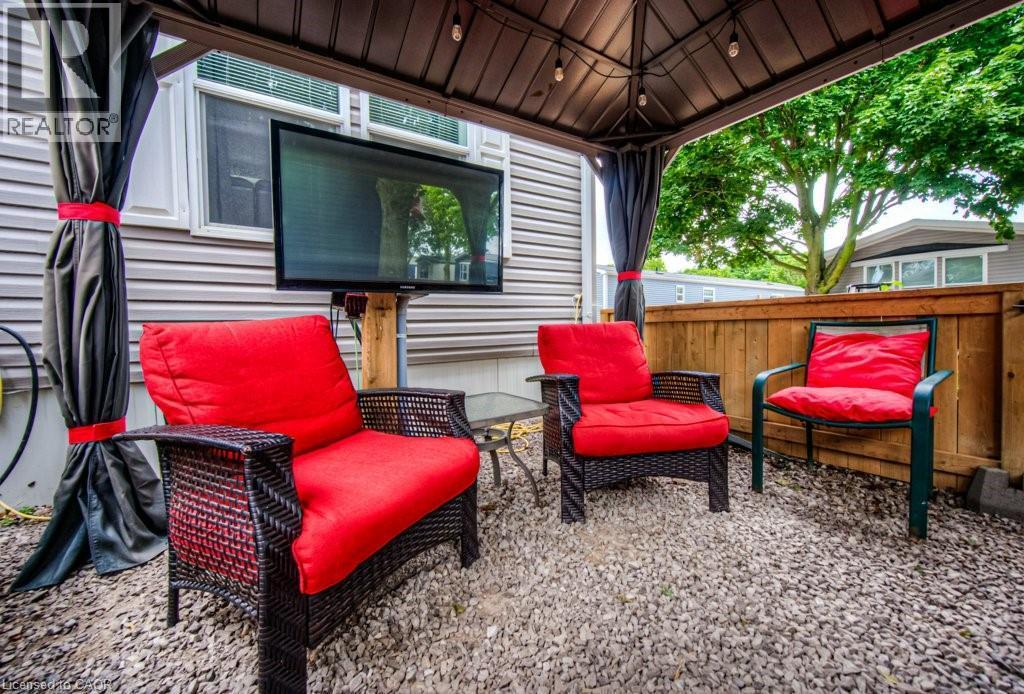 A little slice of Paradise, year round living. Live the Life of Leisure!! Welcome to your peaceful retreat at Twin Springs Cottage Community! This charming modular home has been thoughtfully expanded with a generous addition, offering 4 spacious bedrooms and a full bathroom—ideal for hosting family and friends. Fantastic Airbnb potential!! Situated on an extra-wide lot (approx. 35 x 75), there's plenty of room to relax and enjoy the outdoors. Step outside to a fully fenced yard featuring a brand-new shed, beautifully lit gazebo, propane BBQ hookup, and a wooden deck—perfect for entertaining or soaking up the sunshine during summer BBQs. Surrounded by nature, this property offers a rare combination of year-round comfort and cottage-style charm, making it equally suited as a weekend getaway or full-time residence. Enjoy a quiet, rural setting with access to two lakes and a beach area, where you can kayak, canoe, or take out small boats at your leisure. The community also offers a range of amenities including: lake with beach access, fishing, volleyball, Dog Park, horseshoes, playground, ping pong, community center and more! Despite its tranquil setting, Twin Springs is just a short drive to Woodstock, Brantford, Paris, and major highways—offering easy access for commuters or weekenders alike. Whether you're looking to downsize, invest, or embrace a simpler lifestyle, this home offers a perfect blend of relaxation, recreation, and convenience. (id:6289)