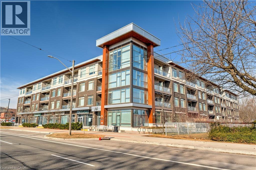 EXPECT MORE FROM CONDO LIVING! Welcome to Jazz, a boutique condo by Branthaven Homes. At 657 sq. ft., this stylish ground floor unit makes the most of every inch—room for living, dining, and working, all wrapped in modern design. Soaring 10’ ceilings and southwest-facing windows bring in plenty of natural light, giving the space an open, airy feel. The kitchen? Quartz counters, sleek cabinetry, a functional island with seating for 3, and stainless steel appliances—because practicality should still be beautiful. Hardwood floors throughout create a clean, cohesive look. Need a spot to entertain? The massive party room has you covered—think foosball, a pool table, and a full kitchen—plus an outdoor patio with BBQs for summer nights. There's also a gym, yoga studio, library, and plenty of visitor parking! All of this in a prime Aldershot location, minutes from GO Transit, major highways, and everything you need. It’s stylish, it’s functional, and it’s waiting for you! (id:6289)