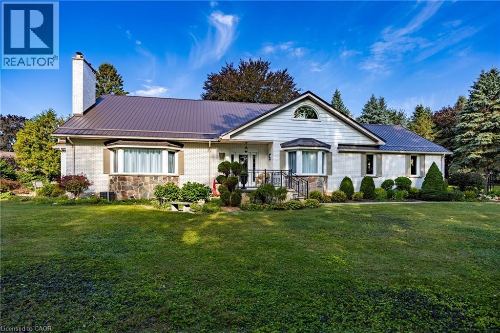 Welcome to this lovingly maintained 2-storey home set on just over an acre of beautifully landscaped grounds, complete with a small stream along the edge of the property. Offering 3 spacious bedrooms and 2 full baths, this home combines comfort and charm with thoughtful updates throughout. The primary suite features two walk-in closets and a private balcony, perfect for morning coffee or evening relaxation. A large eat-in kitchen provides plenty of space for family gatherings, while the formal dining room and inviting living room with gas fireplace create a warm and welcoming atmosphere. Enjoy peaceful views of the backyard from the bright sunroom. The open basement is full of potential, with a walk-up to the oversized garage—an ideal setup for a future in-law suite or additional living space. All this within minutes of schools, shopping, dining, and all the amenities that Simcoe has to offer. (id:6289)