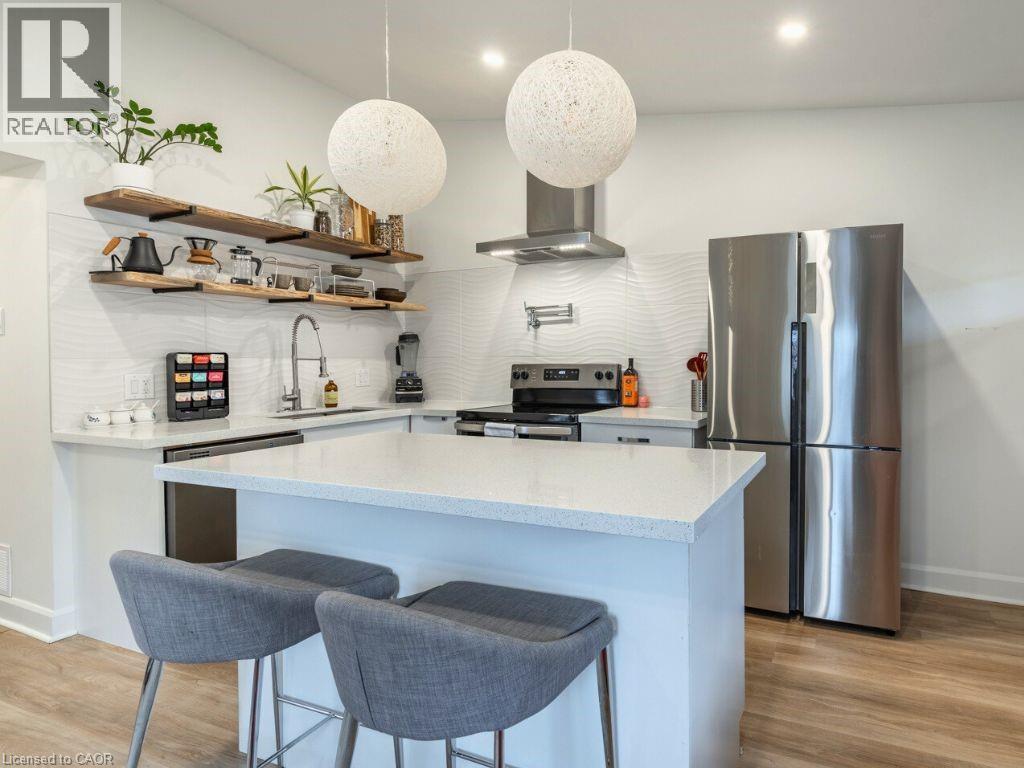 Just a 6-minute walk to vibrant Ottawa Street! This beautifully updated 2 bedroom, 1 bathroom home offers a maintenance-free backyard designed for entertaining while enjoying the perks of the Crown Point neighbourhood. The spacious front lawn features five large garden beds - perfect for growing fresh vegetables and herbs. A long driveway with parking for three leads up to the welcoming front porch with a newly built railing. Inside, natural light pours through the home from morning to evening, creating the perfect environment for thriving houseplants. The open-concept living room and kitchen with new flooring (installed 2022) are ideal for gatherings. The kitchen is outfitted with quartz countertops, stainless steel appliances - including a built-in dishwasher, wine fridge, and convenient pot filler. The updated 3-piece bathroom boasts brand-new tile and in-suite laundry with a folding counter for added functionality. Step out to the backyard and enjoy the large partially covered deck, which leads to a finished, insulated bonus space with hydro. Whether you’re looking for an office, workshop, yoga or art studio, the possibilities are endless. An additional insulated storage room with a separate entrance provides space for tools or could even be transformed into a sauna retreat. With Hamilton’s trendiest restaurants just steps away, you’ll love hosting friends for a cocktail at your new home before strolling to the patios of Ottawa Street. Does this sound like the perfect fit? Reach out today to book your private showing! RSA. (Photos were taken prior to the current tenancy.) (id:6289)