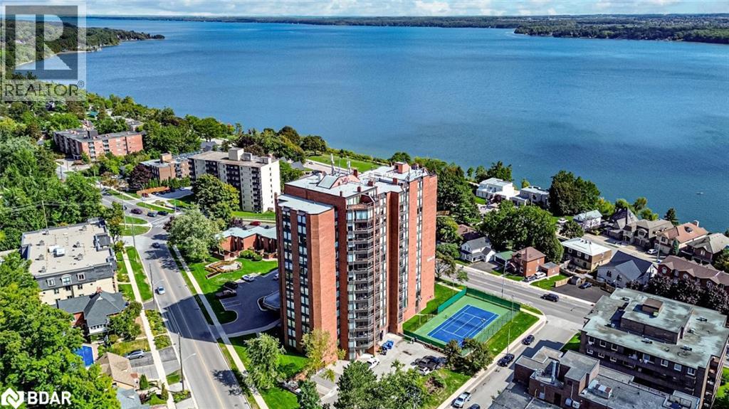 HIGHLY REGARDED BAY CLUB CONDO STEPS FROM KEMPENFELT BAY WITH UNBEATABLE AMENITIES, A STRONG COMMUNITY, & STUNNING SUNROOM WITH WATER VIEWS! Discover 1,210 square feet of bright, carefree living in this expansive condo located in the highly sought-after Bay Club, just steps to Kempenfelt Bay, scenic waterfront trails, and shoreline parks with playgrounds and open green space overlooking the water. Enjoy a truly walkable lifestyle with downtown shops, restaurants, cafes, cultural venues, and entertainment all within minutes, plus easy access to public transit routes connecting you throughout Barrie. This well-established residence is celebrated for its reputable management and strong sense of community, with secure entry and beautifully landscaped grounds enhancing the appeal. Oversized windows flood the immaculately maintained open concept living, dining, and kitchen area with natural light, while the enclosed sunroom extends the living space year-round with spectacular southeast views of the bay. This unit is also the only 2-bedroom floor plan in the building without a step down, providing ease and functionality. The spacious primary retreat offers a private 4-piece ensuite, complemented by a second bedroom and another full 4-piece bathroom, while an in-suite laundry room with storage adds everyday convenience. Exceptional resort-style amenities elevate your lifestyle, including an indoor pool, sauna, gym, racket and squash court, tennis court, library, party and games rooms, guest suites, workshop, potting room, car wash bay, bike storage, and ample underground and visitor parking. Step into a community that delivers more than just a #HomeToStay, and discover effortless condo living with every comfort and convenience right at your doorstep. (id:6289)