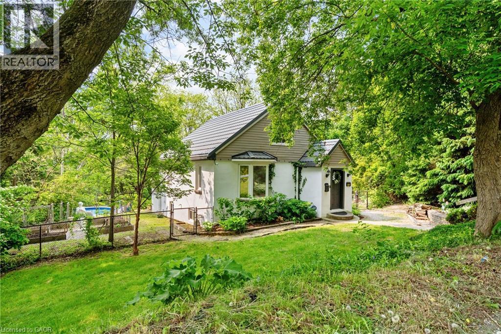 Cottage Living in the City-A Hidden Gem at the Escarpment. This newly renovated 2+3 bedroom, 3-bathroom home blends modern comfort with serene, country-style living right in the city. Nestled on nearly half an acre of private, tree-lined land at the base of the escarpment, this unique property offers the peace of a rural retreat while being just minutes from the GO Train, Highway 6, and Downtown Dundas/Waterdown/Hamilton. Step inside to find a sun-filled main floor featuring a beautifully updated kitchen, bathroom, and bedrooms, all accented with rich hardwood flooring. Upstairs, two spacious bedrooms and a stylish 2-piece bathroom provide comfortable family living. The fully finished basement with its own separate entrance offers incredible flexibility, including 3 additional bedrooms, a full bathroom with heated floors and a walk-in shower, and a cozy office with a built-in fireplace and bookshelf feature wall, along with an updated cold room for storage. High voltage outlet built in for the option to add a kitchen to the basement for separate living space. Step outside to your backyard oasis. Perfect for entertaining or quiet relaxation, the expansive outdoor space includes: above ground pool, over 30 mature rose bushes, peonies, lilacs and other perennials, fruit orchard and vegetable garden, a charming red barn-style chicken coop. Located just steps from the Bruce Trail, Royal Botanical Gardens, and a family-friendly park, this home offers the best of both worlds: nature at your doorstep and every convenience nearby. This is more than a home-its a lifestyle. Don't miss your chance to see it. (id:6289)