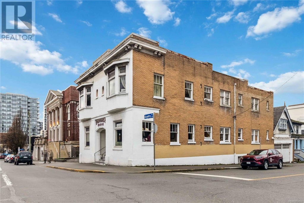Seize a rare opportunity that comes once in a blue moon to own a coveted corner lot in the vibrant heart of downtown Victoria! Rosedale Manor is a six-unit multi-family building brimming with potential, offering unmatched versatility in a prime location. Zoned CA-3 (Central Area General Commercial District), this property permits a wide range of uses, including residential, office, retail, restaurant, transient accommodations, and many more. Currently zoned for up to 3:1 FSR. Within the OCP core residential urban place designation, this can potentially reach a maximum of 5.5:1 FSR. The City has recently been approved up to $215 million to redevelop a new facility at Crystal pool. This future landmark, along with ongoing city upgrades, is enhancing the area's appeal. Whether you envision a dynamic mixed-use development, a revitalization project, or a high-yield investment, this is your chance to secure a presence in one of Victoria’s most sought-after and evolving neighbourhoods. Don’t let this opportunity pass—act now! (id:6289)