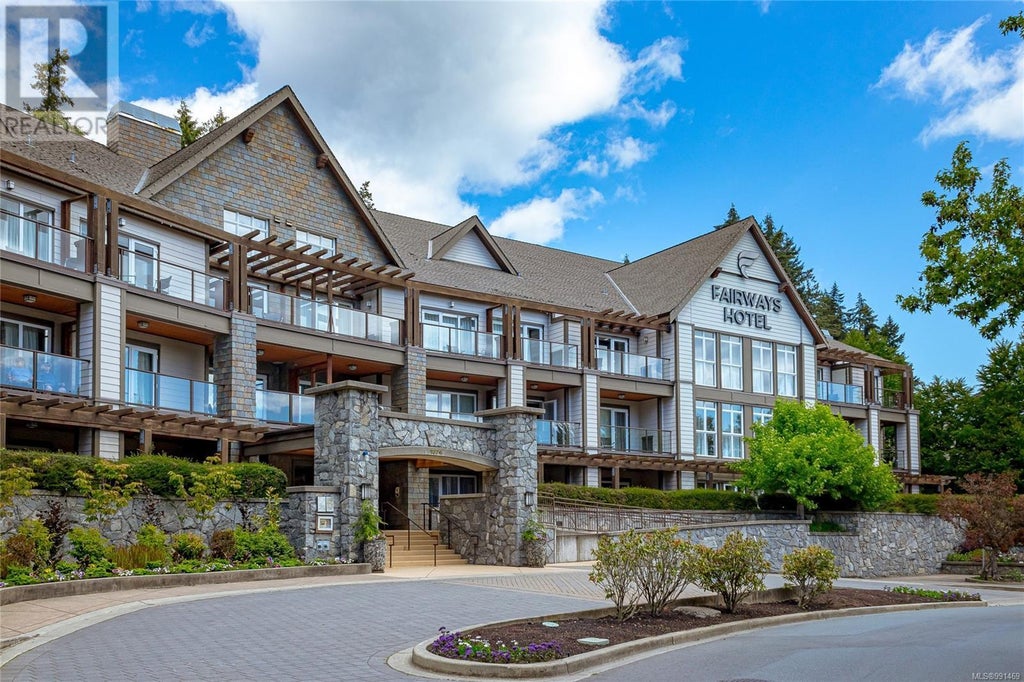 Discover a fantastic quarter share opportunity in the prestigious Fairways Hotel at Bear Mountain. Nestled at the base of Mt. Finlayson, this ground floor, 1550 sqft unit offers a 1 bdrm/2 bath suite, featuring a full kitchen and fireplace & an adjoining 1 bdrm/1 bath with a kitchenette lock-off. Enjoy the convenience of being situated on the fairway of the 1st hole of one of the two Jack Nicklaus-designed golf courses, surrounded by tranquil forest views. Just steps away, you'll find specialty shops, a clubhouse, spa facilities, restaurants, and more. Sports enthusiasts will love the state-of-the-art covered clay tennis courts, mountain biking trails, and the Bear Mountain Activity Centre, complete with a gym and outdoor pool. Plus, you have direct access to the popular Mt. Finlayson hiking trails. A mere 25-minute drive brings you to Victoria’s vibrant downtown core. When not in use, the unit is managed and rented out by hotel staff, providing revenue back to the owner. This beautiful, fully furnished suite offers everything from the essentials to luxury touches. Don’t miss out on this exceptional opportunity to own a piece of Bear Mountain's serene and active lifestyle. (id:6289)